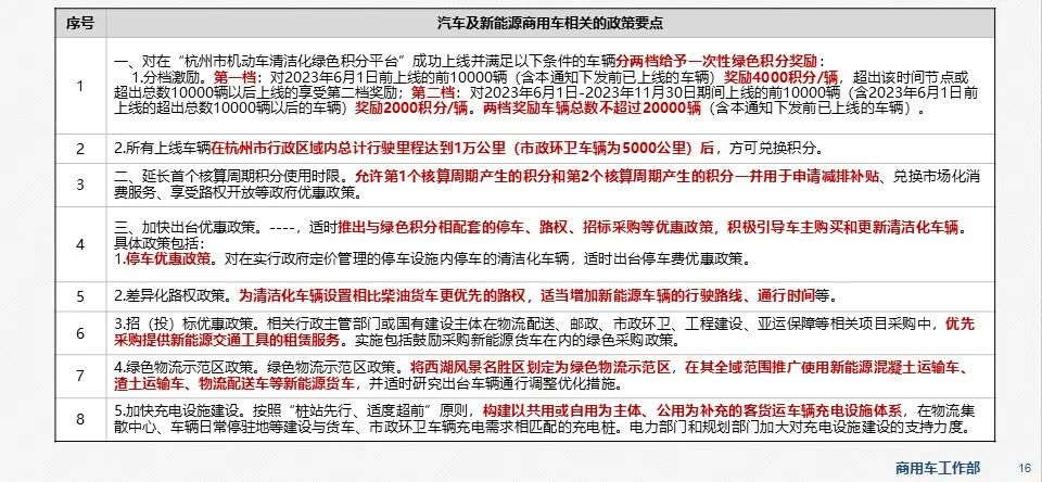 - 11月17日,杭州市发布了关于《杭州市重点领域机动车清洁化绿色积分实施细则(试行)》的补充通知(征求意见稿),激励推进车辆清洁化。