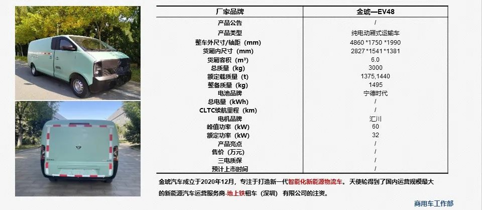 - 工信部(第365批) 《道路机动车辆生产企业及产品公告》中公示了金琥-EV48车型,这款车为金琥汽车委托江铃生产,其核心参数配置如下: