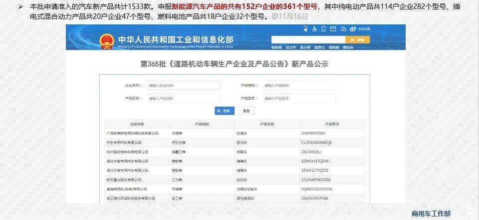 - 工信部发布第365批《道路机动车辆生产企业及产品公告》新车公示。