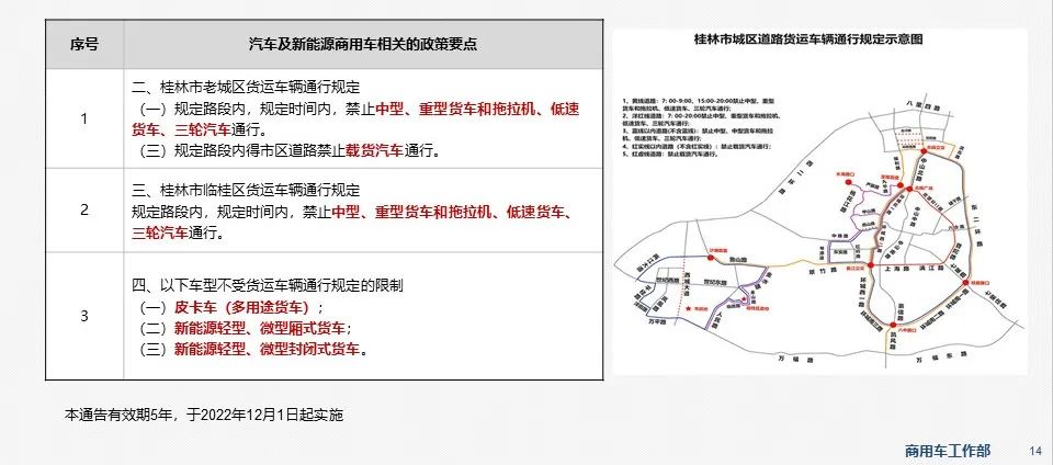 11月16日,广西桂林交警发布《关于调整桂林市城区道路过境车辆和货运车辆通行规定的通告》,取消皮卡及新能源货车的通行限制。