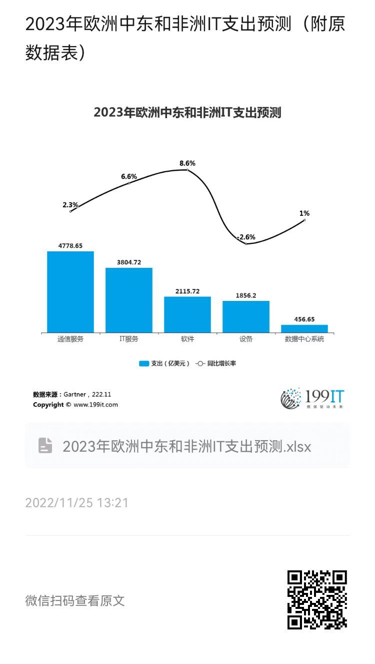 - Gartner:2023年全球IT支出将达到4.6万亿美元