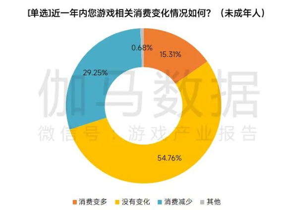 同时,在游戏防沉迷限制下,29.25%的未成年人游戏消费有所减少,2022年出现未成年人私自充值现象的家庭占比从2021年的28.61%降至15.43%。
