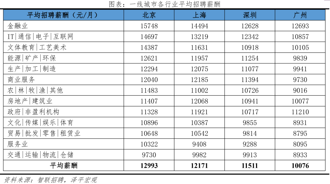 从来源看,2021年人才向北京流入的前十大城市合计占比36%,其中天津占比第一,为7%,北京对周边城市虹吸作用明显。人才流入北京主要因为北京经济体量大、收入水平高,2021年GDP规模达到4.03万亿、城镇人均可支配收入8.15万元,仅次于上海、排名第二。根据智联招聘数据,2021年北京市平均招聘薪酬为12993元/月,为重点城市中最高水平。2021年7月北京人社局印发《北京市引进毕业生管理办法》,适用对象新增“毕业两年内初次就业”的毕业生,同时放宽年龄限制,本科从24岁增至26岁、研究生从27岁增至30岁,人才引进政策明显放松,2021年北京人才流入占比提升。