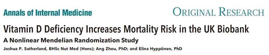 [4]. Sutherland JP, Zhou A, Hyppönen E. Vitamin D Deficiency Increases Mortality Risk in the UK Biobank : A Nonlinear Mendelian Randomization Study [published online ahead of print, 2022 Oct 25]. Ann Intern Med. 2022;10.7326/M21-3324. doi:10.7326/M21-3324