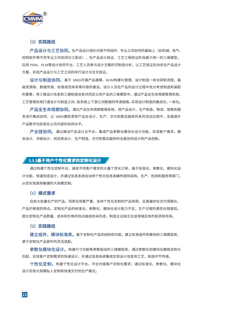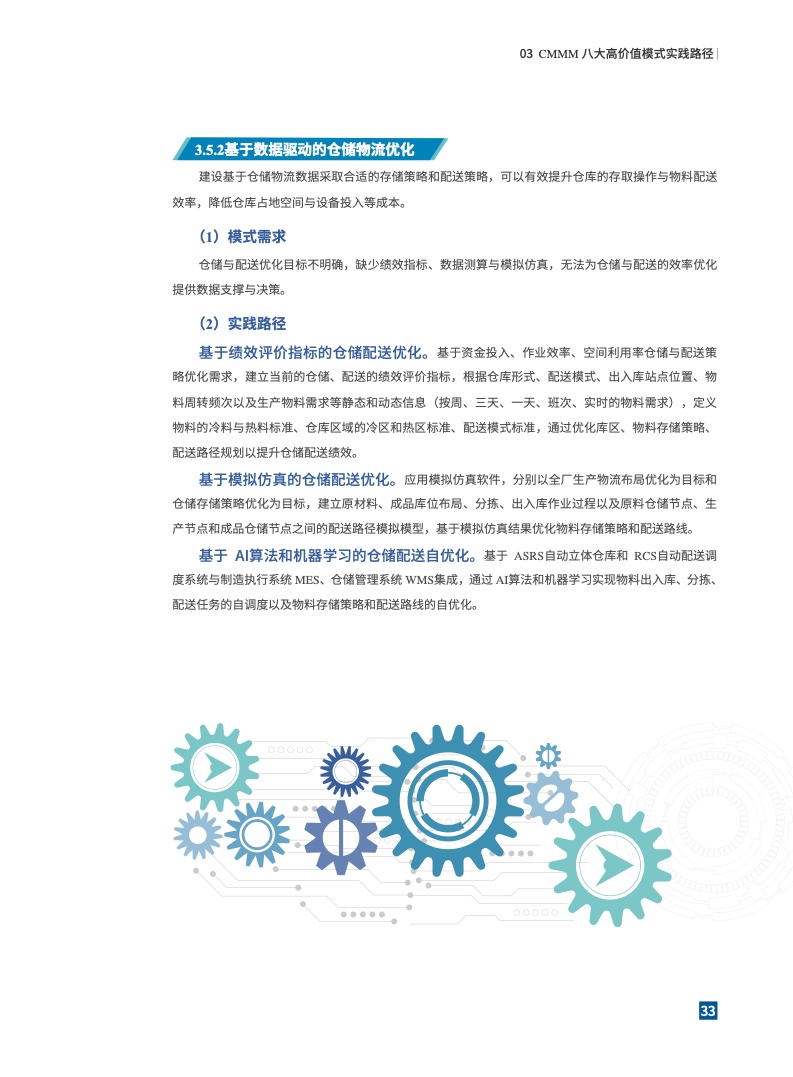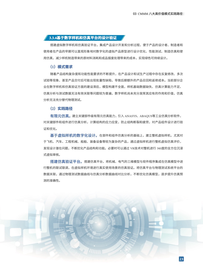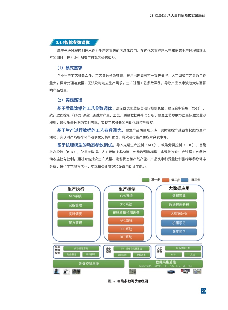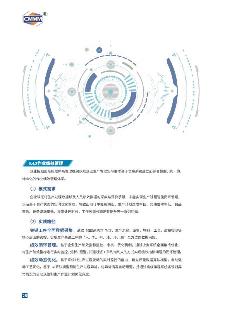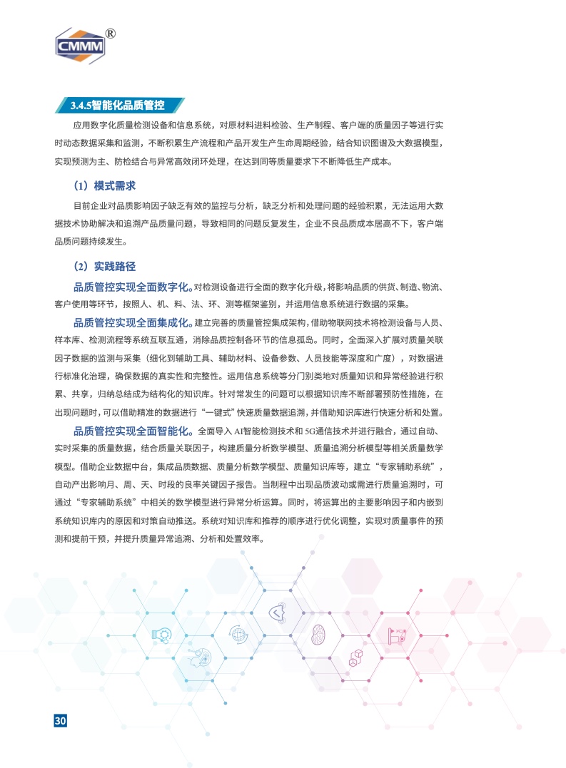 CMMM 2.0中凝结了300多家制造企业的实践经验和方法路径,提出了当前阶段制造企业重点实施的设备全生命周期管理、自组织柔性生产、可持续制造等八大高价值实践模式,给出了不同模式的实践路径,对企业持续提升智能制造能力成熟度水平提供实践指导。