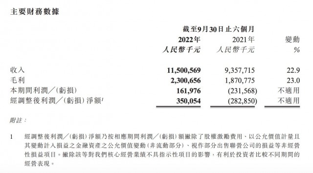 集团录得毛利约为23亿元,毛利率为20.0%,其中医药自营业务的毛利率得益于数字化营销能力的加强和定价能力的改善而同比提升。截至2022年9月30日止六个月本集团录得期内利润约1.62亿元,而同期为期内亏损约人民币2.316亿元,实现扭亏为盈。