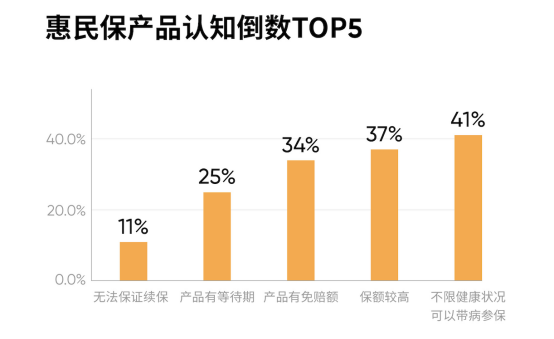 值得关注的是,虽然近年来惠民保发展迅速,但用户对产品认知仍存在不足。《报告》显示,从产品理解程度来看,用户对免赔额、等待期、无法保证续保的认知程度较低,只有11%的用户了解惠民保无法保证续保,仅25%和34%的用户了解产品是否有等待期及免赔额。