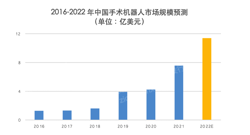 机器人辅助完成的外科手术量持续高速增长。虽然目前全球只有 2%的手术是借助手术机器人完成,但是随着手术机器人技术的不断成熟、适应症的不断增加以及治疗成本的降低,近年来越来越多的手术机器人被应用于外科手术中。