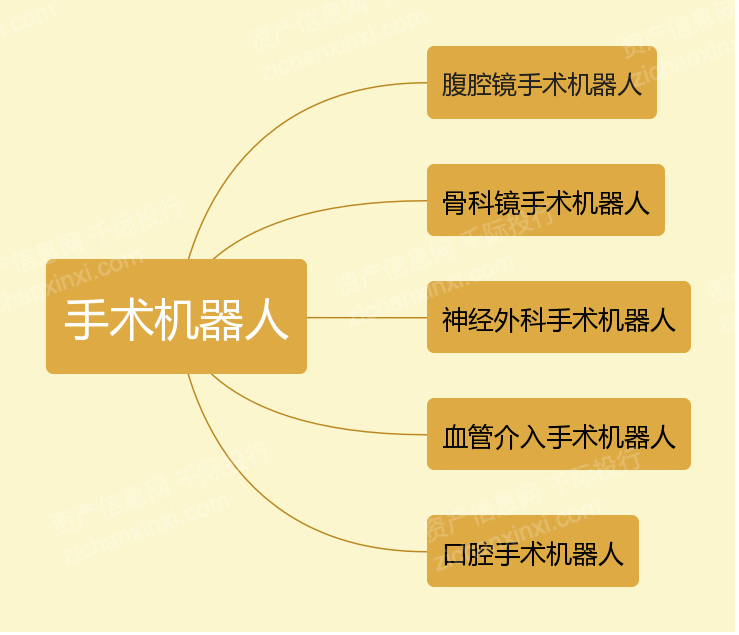 按照手术部位机器人产品可分为腹腔镜手术机器人、骨科手术机器人、神经外科手术机器人、血管介入手术机器人和口腔手术机器人等;按照产品功能则可分为操作类手术机器人和定位类手术机器人。