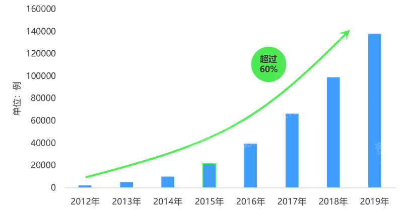 图:2012 至 2019 年达芬奇手术机器人在国内累计完成的手术量情况