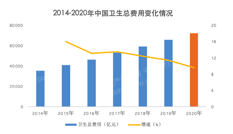 随着我国经济的不断发展,居民收入水平的提升,以及国家医疗保险制度的不断完善,我国医疗卫生消费市场规模也随之迅速扩张,可以预见,在我国日益增长的医疗卫生消费市场规模下,医疗机器人行业也将迎来广阔发展空间。据资料显示,2020 年我国卫生总费用达 72175 亿元,同比增长 9.6%。