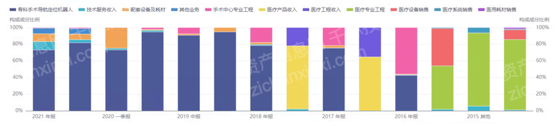 在定位类机器人领域,天智航在中游环节进行不同医疗器械领域的横向扩张:2017 年天智航投资法国 SPW 公司,布局骨科脊柱类高值耗材领域;2018 年投资美国 GYS 公司和美国 Mobius 公司,开始涉足影像设备领域中的移动 CT 领域,有望通过横向中游产品的产业链贯通降低产品成本。