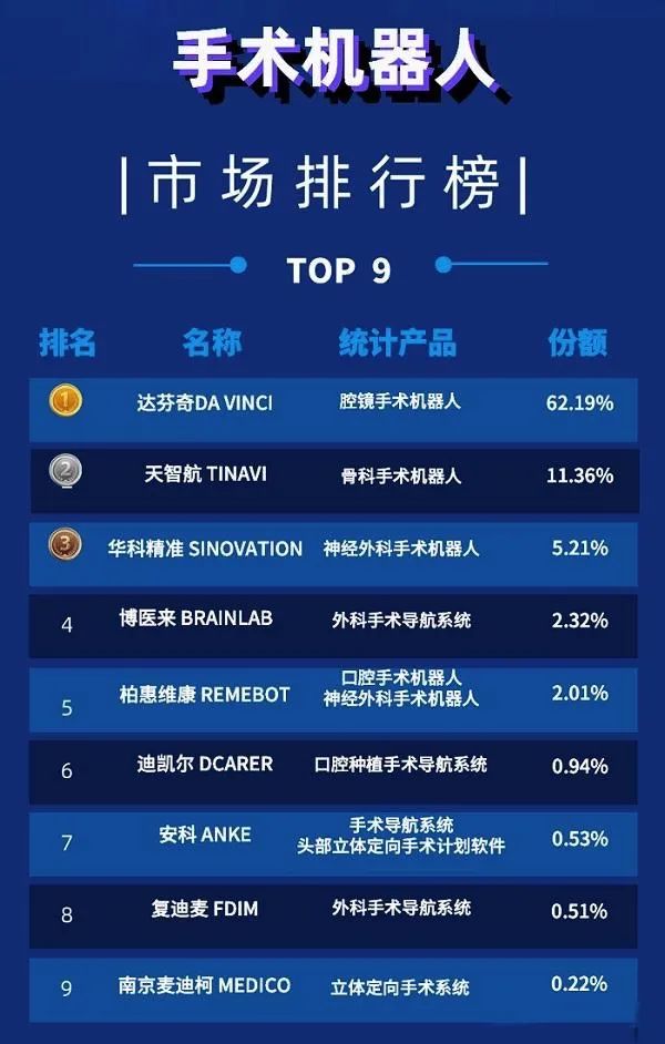 在国际市场中,除美国直觉外科公司的达芬奇手术机器人腹腔镜手术机器人领域形成了一家独大的行业格局外,在神经外科、骨科、血管介入、口腔科等手术机器人领域我国企业已具备较强的竞争力,并且在未来将继续持续地发力,有望在国际市场上与外国品牌同台竞争。
