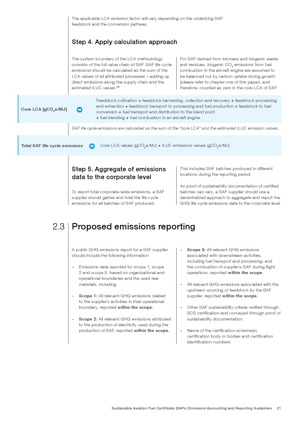 SAF 证书(SAFc)是一种市场机制,其功能类似于能源属性证书(EAC),代表一公吨纯净(即未混合)SAF 的环境属性。公务航空客户(无论是商务旅行还是货运)都迫切需要切实可行的解决方案来应对他们的供应链排放问题。SAFc可以利用这种需求来促进SAF的更快扩展,并使更多参与者能够开始以切实的方式对其价值链进行脱碳。这种市场机制可以为消费者提供一种向新生的SAF 市场发送有意义的需求信号的工具。