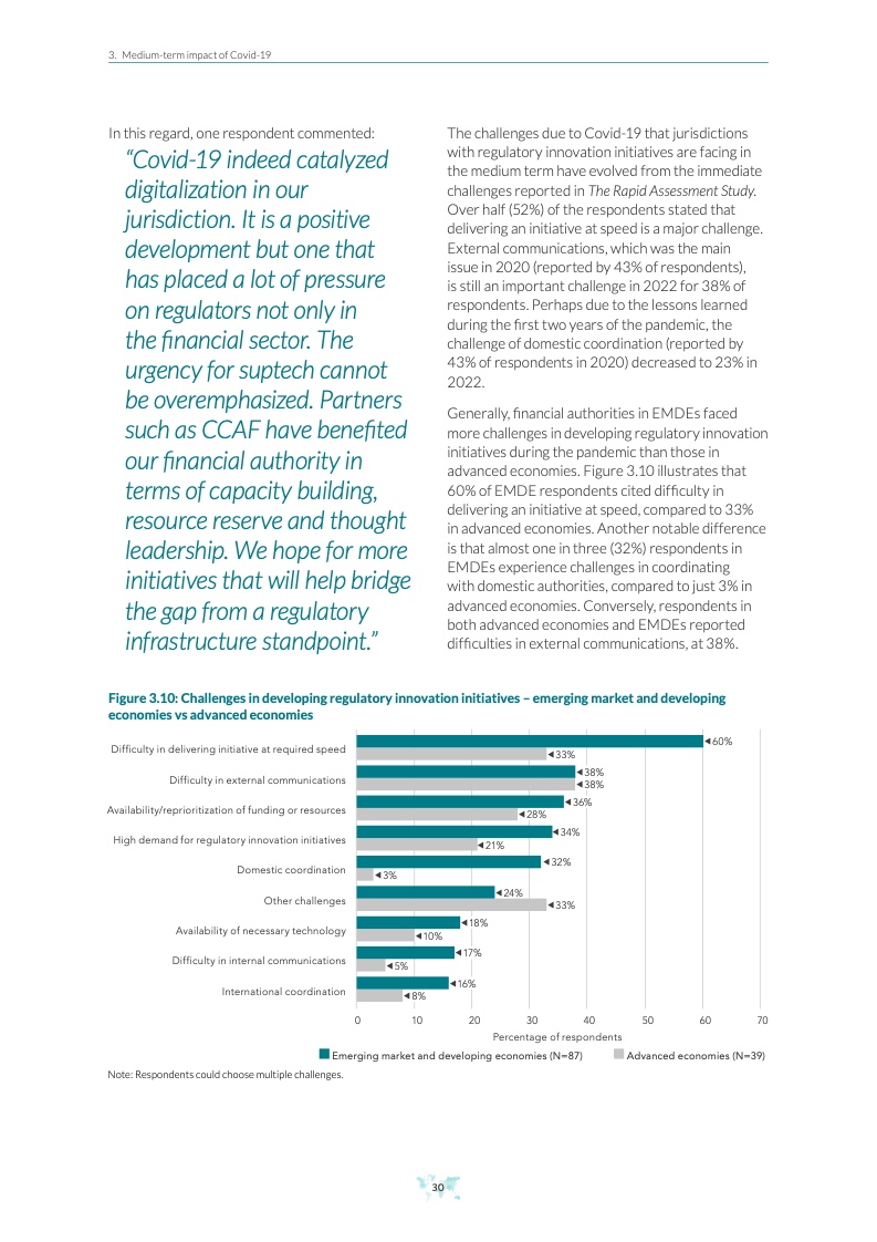 41%的受访机构表示,他们的目标是将DRSI应用于开放银行。监管者和监督者感兴趣的其他数字计划还包括数字身份/e-KYC、央行数字货币(CBDCs)和数字资产监管。有限的知识和/或专业技能是为新兴市场和发展中国家的更多金融机构开发有效的DRSI的一个根本挑战。