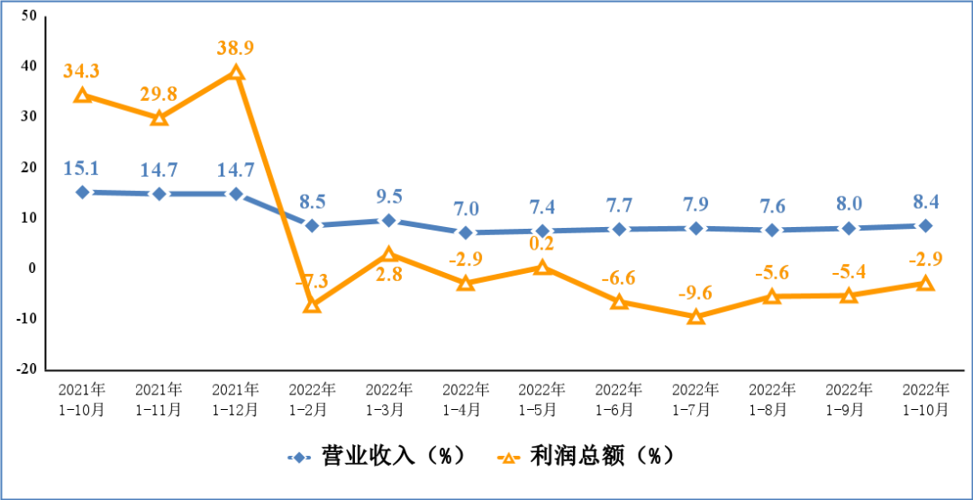 图 3 电子信息制造业营业收入、利润总额累计增速