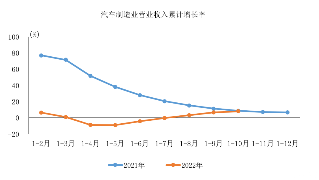 中国汽车工业协会:2022年1-10月汽车制造业营业收入继续保持较快增长 中国汽车工业协会整理的国家统计局数据显示,2022年1-10月,汽车制造业完成营业收入74858.8亿元,同比增长8.0%,占规模以上工业企业营业收入总额的比重为6.7%。随着国家稳经济一揽子政策和接续政策措施加快落实、促进汽车消费政策持续显效,汽车制造业累计营收增速较1-9月份有所提升。 更多阅读:中国汽车工业协会:2022年汽车制造业利润略有增长中国汽车工业协会:2023年1-7月汽车制造业利润同比微增中国汽车工业协会:2022年汽车制造业固定资产投资保持快速增长中国汽车工业协会:2020年汽车制造业固定资产投资同比下降12.4%中国汽车工业协会:2022年6月汽车制造业工业增加值同比呈明显增长中国汽车工业协会:2022年1-5月汽车制造业实现利润同比降幅比上月略有扩大中国汽车工业协会:2022年1-8月汽车制造业固定资产投资稳中有升中国汽车工业协会:2022年1-4月汽车制造业固定资产投资同比增速略有减缓中国汽车工业协会:2021年1-2月汽车制造业固定资产投资同比结束下降中国汽车工业协会:2023年1-2月汽车制造业利润同比快速下降中国汽车工业协会:2023年1-5月汽车制造业营业收入同比保持较快增长中国汽车工业协会:2023年1-5月汽车制造业利润较快增长中国汽车工业协会:2023年1-5月汽车制造业固定资产投资保持较快增长中国汽车工业协会:2023年1-5月汽车制造业营业收入同比保持较快增长中国汽车工业协会:2023年一季度汽车制造业工业增加值同比增长