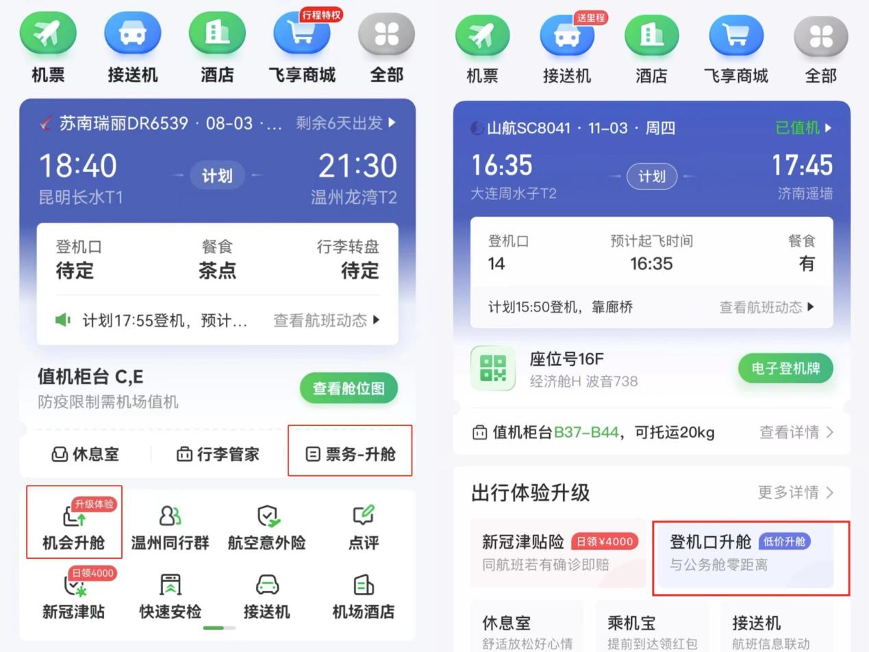 随着疫情政策的调整,旅客出行的意愿也逐渐提高,针对部分旅客更愿意选择个人空间较大、旅客密度较低的商务舱和头等舱的需求,航旅纵横推出多样化的升舱产品,覆盖四川航空、海南航空、山东航空、西藏航空等多家主流航司,操作界面更加简洁明了。若旅客升舱成功,只需要向乘务员主动出示航旅纵横APP“升舱成功”的系统页面,即可全程享受公务舱服务标准。