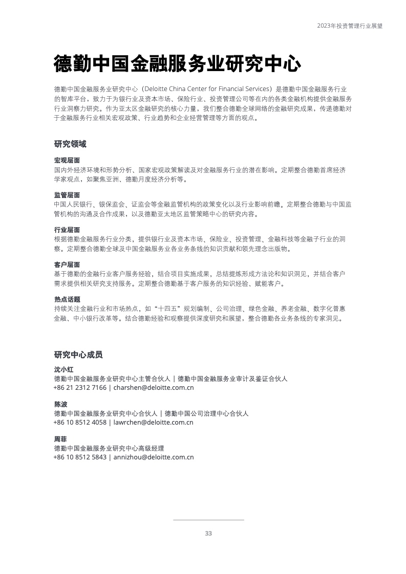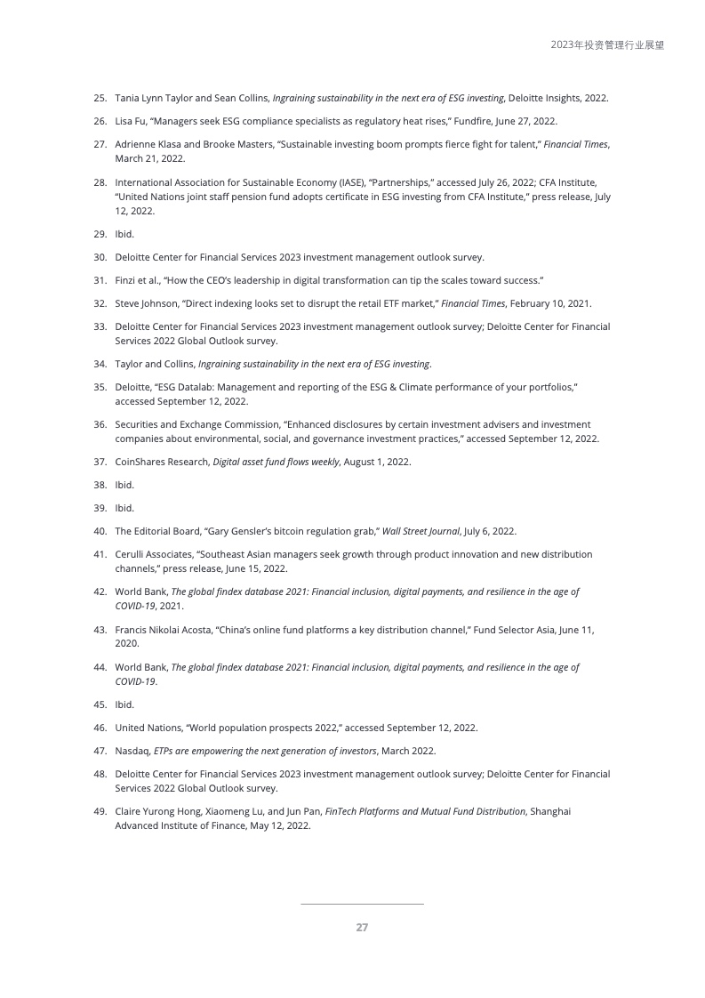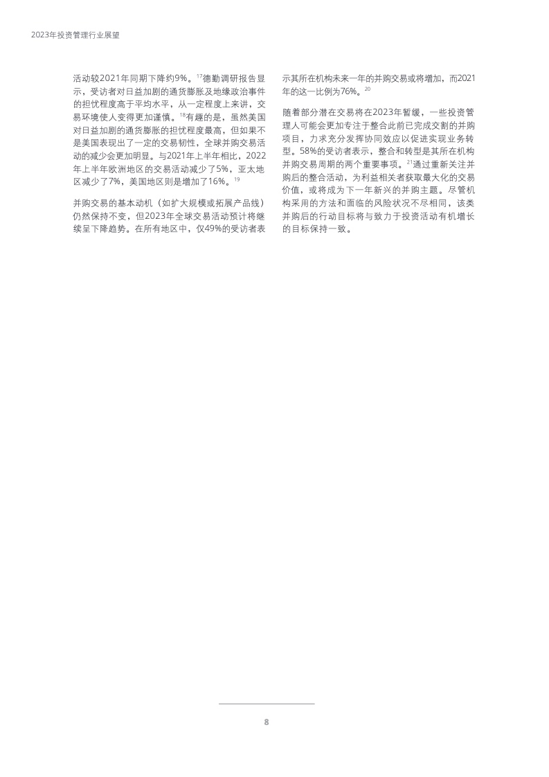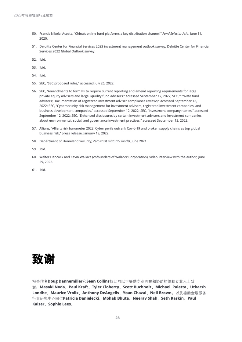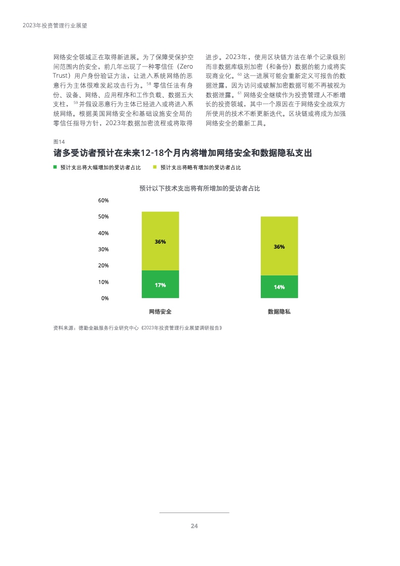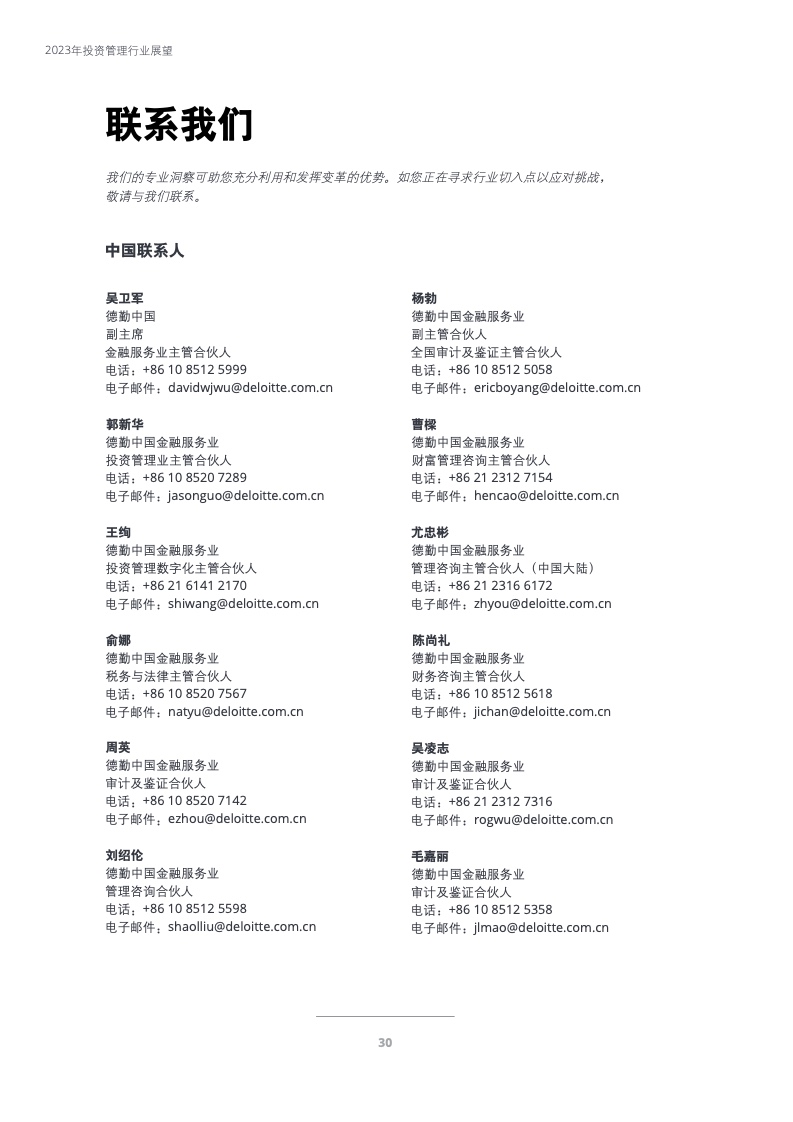 在投资管理人规划并执行2023年战略的过程中,德勤调研结果表明,领导层在整个机构中树立目标感,就是向全面成功迈出了重要的一步。未来一年中,使员工受益的投资规划也将使雇佣机构受益。领导层应努力提升企业文化,并强化良性循环。2023年,注重对员工培训、运营效率提升技术方面投资的机构将更有可能提升客户体验,并助力员工践行企业愿景。