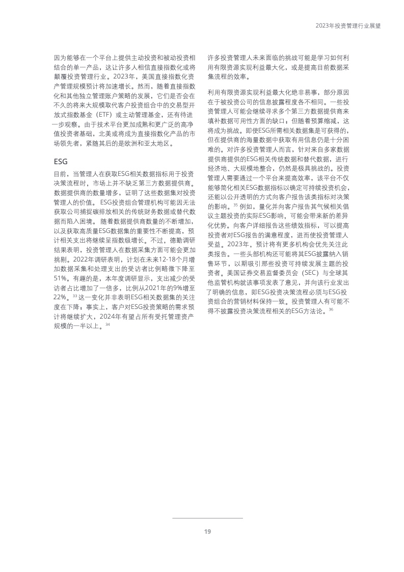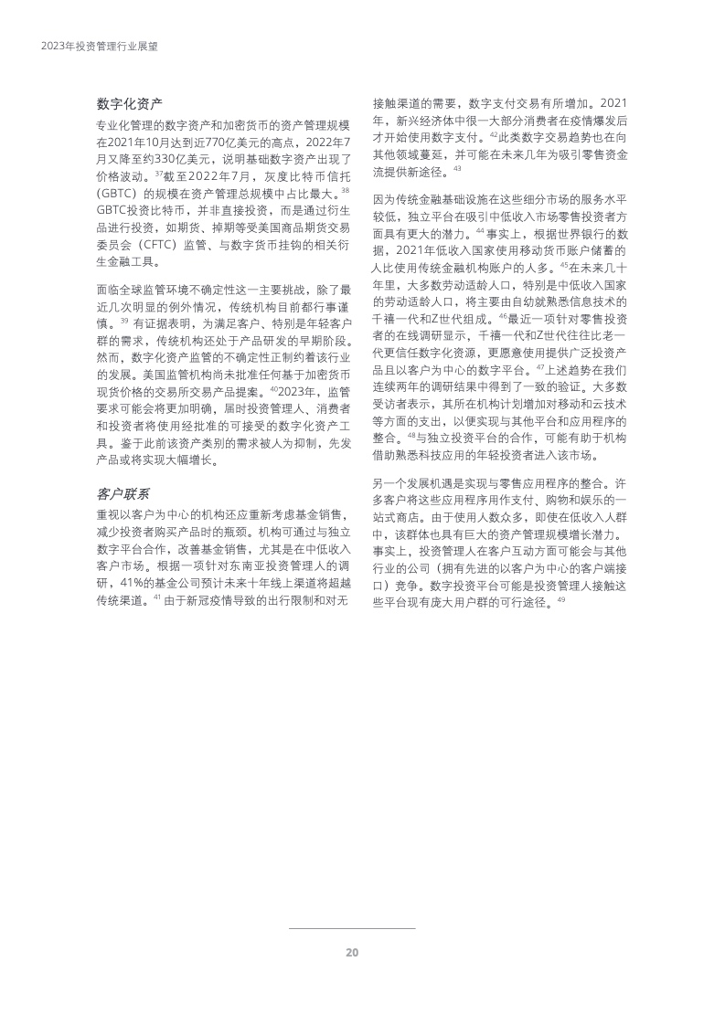 投资管理人继续加大数字化转型方面的投资。它们利用新技术改善客户体验、提升运营效率,并可能因此而产生阿尔法收益。领导层可通过加强部门间的沟通,围绕转型目标促进相互协作,有效推动数字化转型。