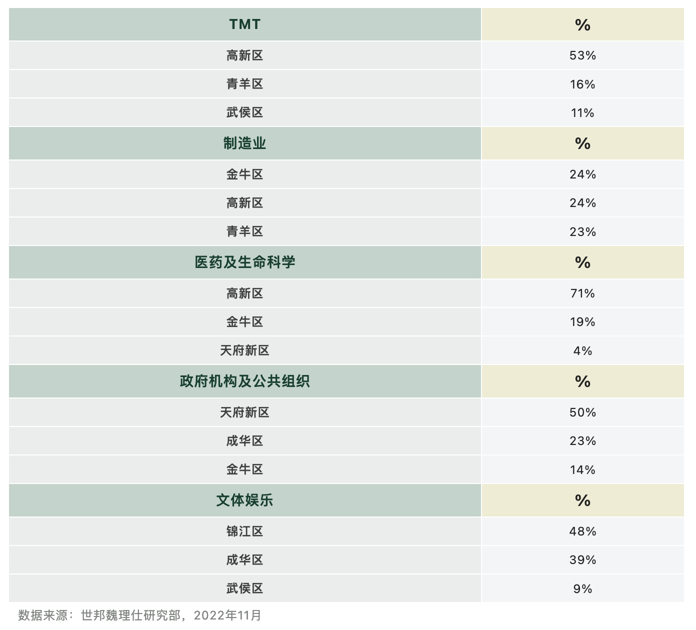 锦江区和成华区主导文化创意产业需求,分别占比全市该类需求的48%和39%。未来产业转型升级提速,锦江区将随着白鹭湾科技生态园、金融城东等板块的建设,以人工智能为代表的产业将加速聚集,造就创新高地;而成华区将依托龙潭工业机器人产业功能区,大力发展都市工业。