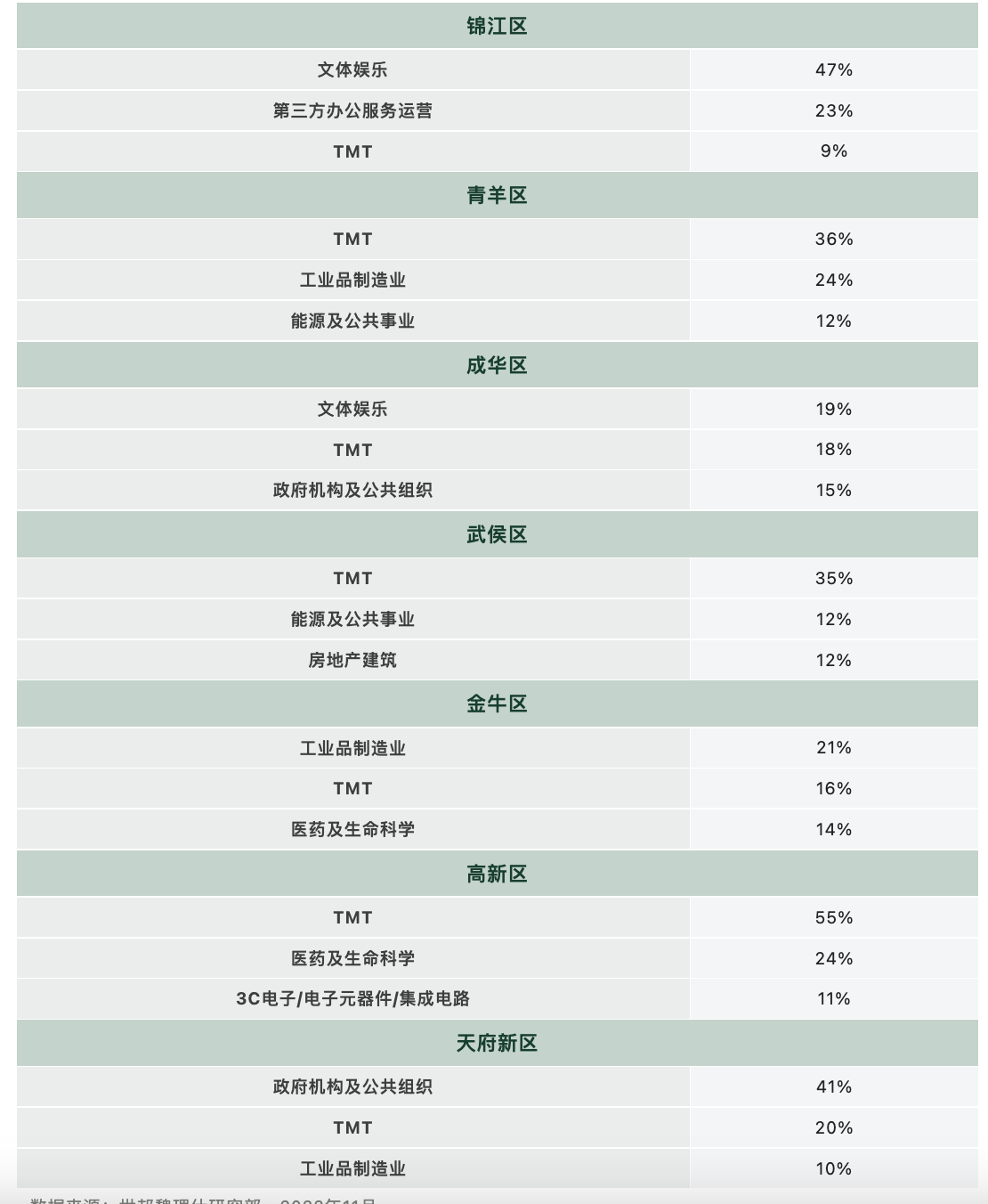 起步较晚的天府新区,依托积极建设中的成都科学城、天府总部商务区等板块,大力发展总部经济、会展博览、数字经济和数字文创等产业,目前已吸引众多高校研究机构的进驻,吸引全市约50%的政府机构及公共组织需求。