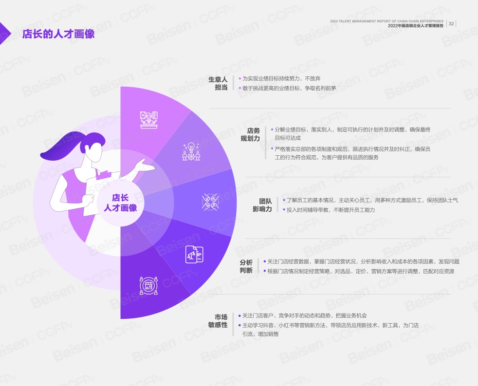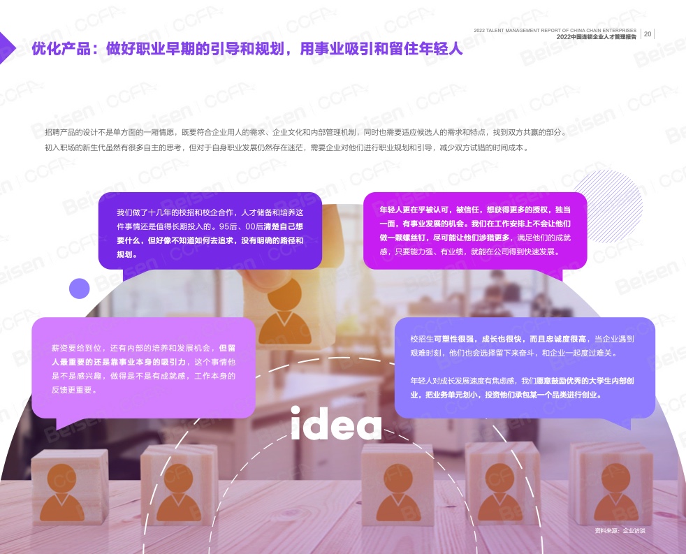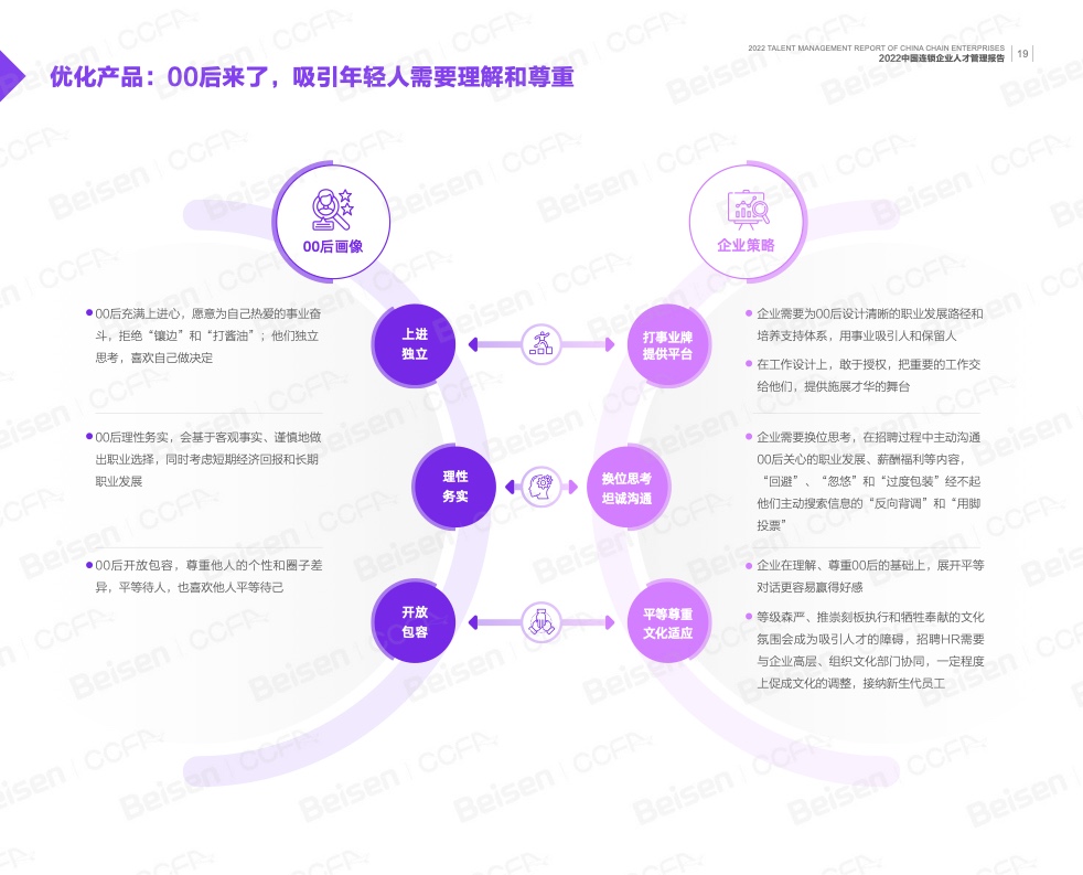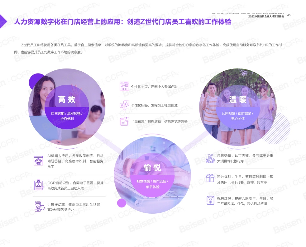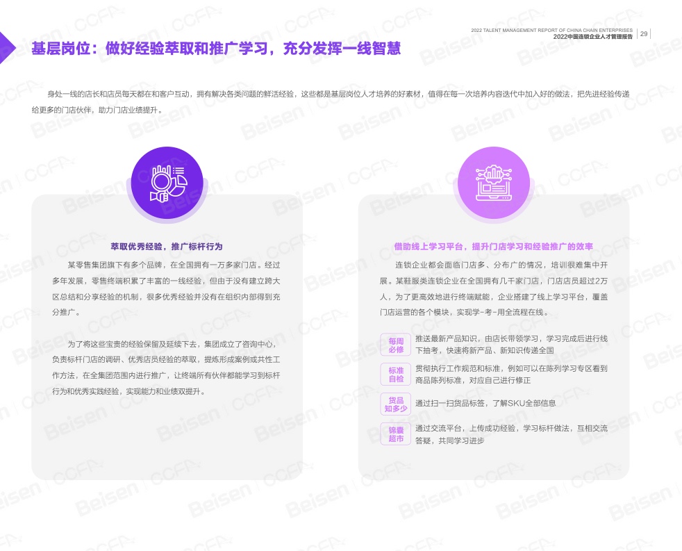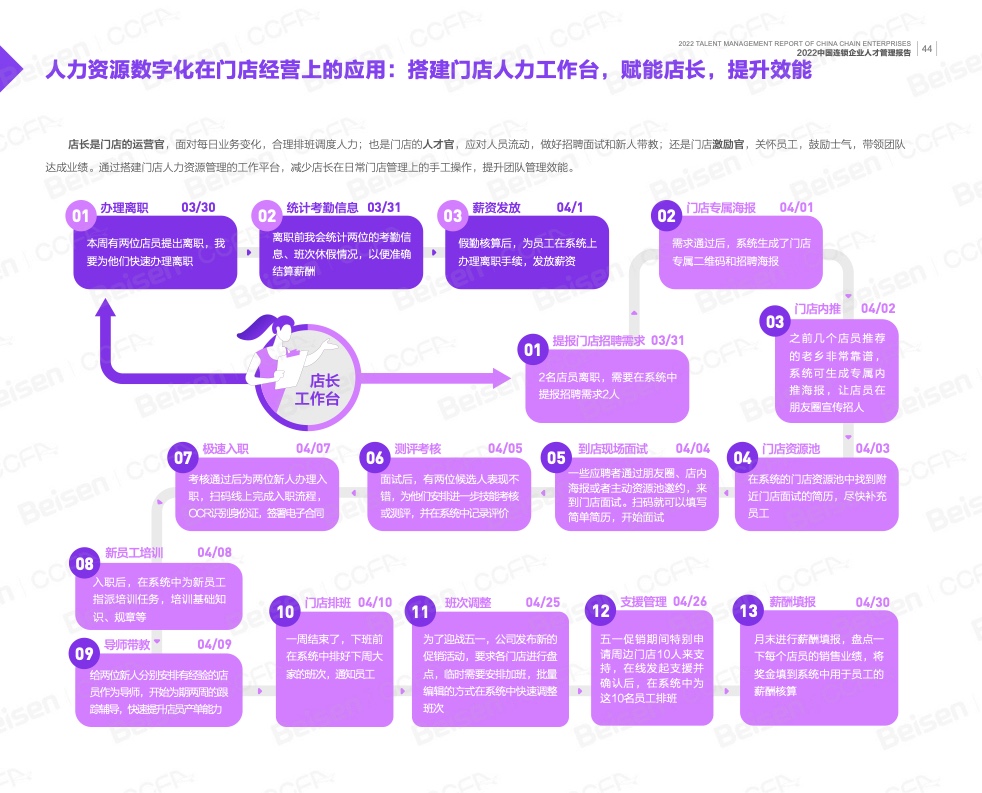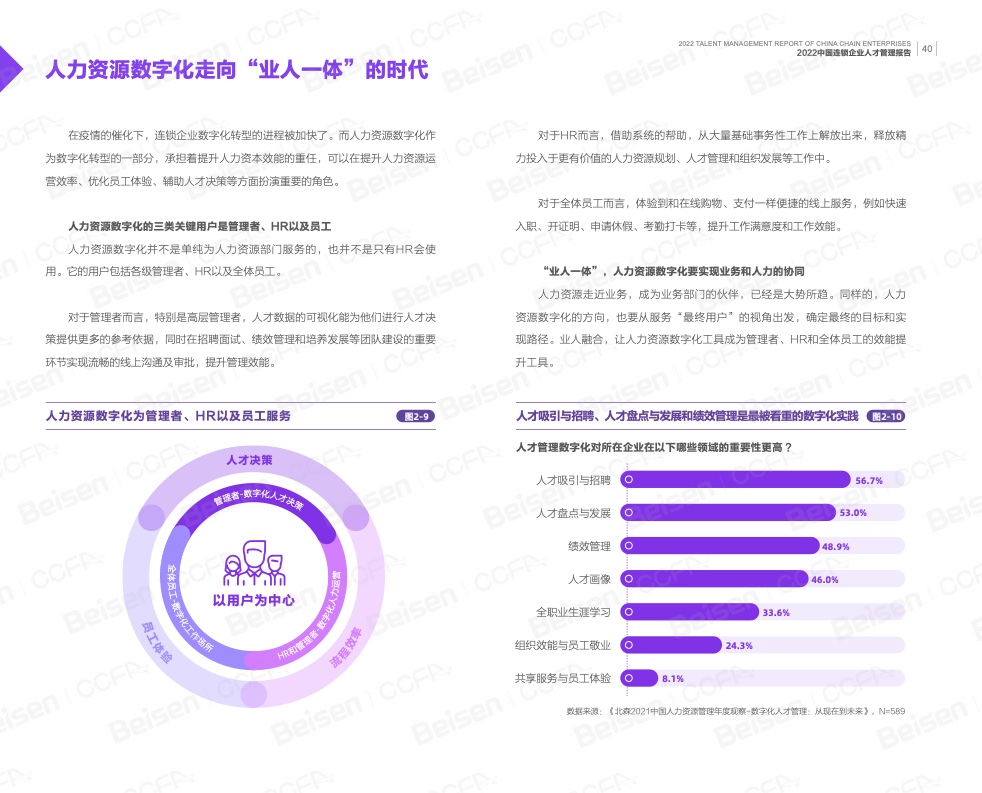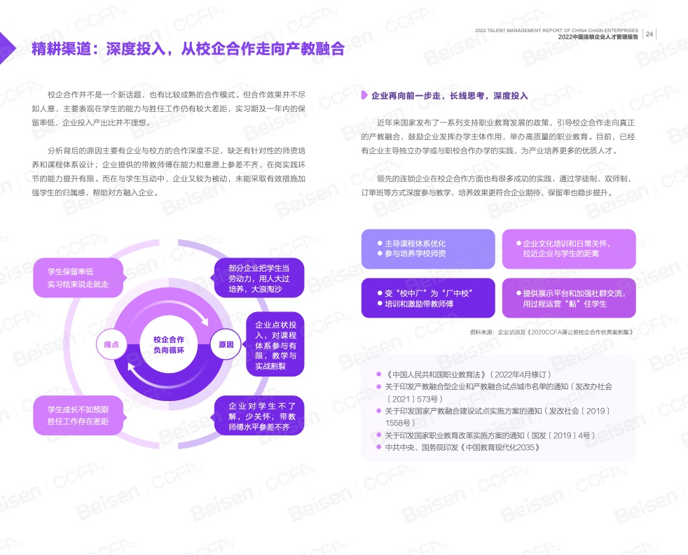 针对以上问题,本报告对连锁企业运营线的内外部人才供应,新业务、新岗位的人才管理工作,以及人力资源的数字化建 设进行了探讨,提出了人才管理工作的策略和行动建议,希望对企业有所启发和借鉴。