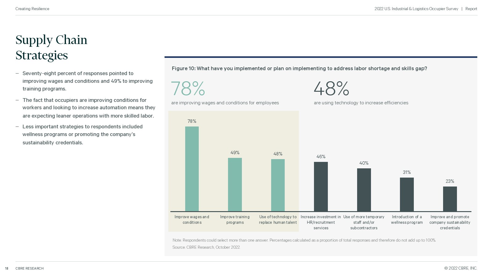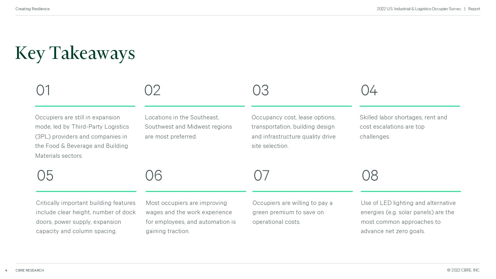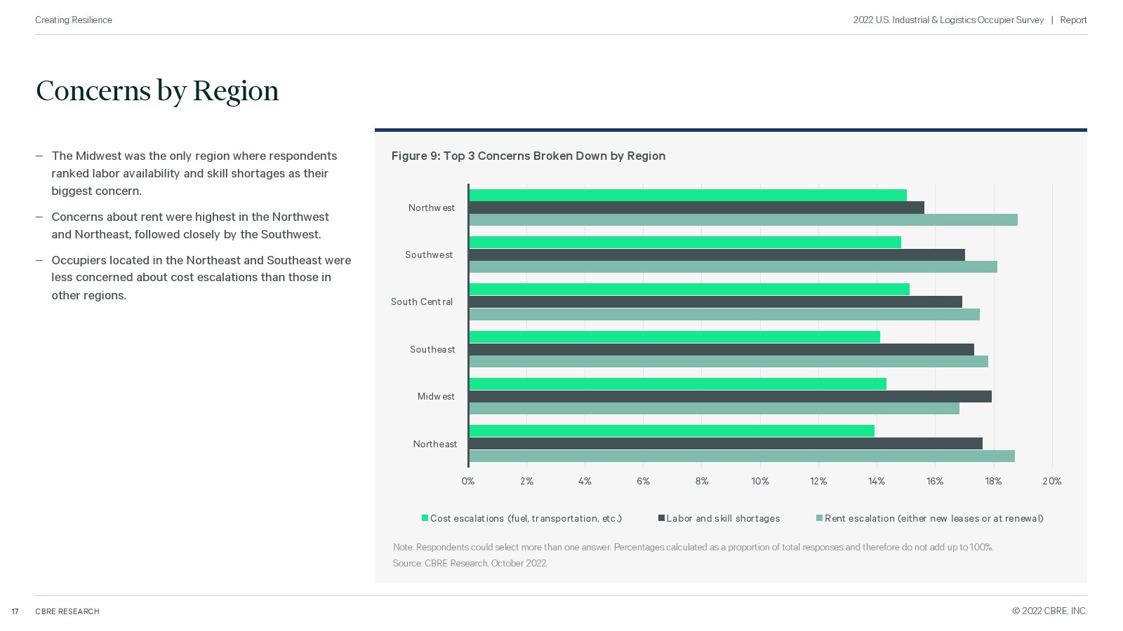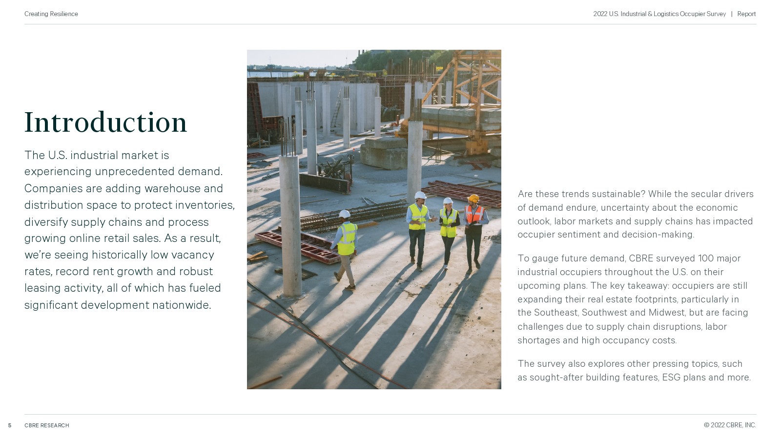 为了衡量未来的需求,世邦魏理仕对全美 100 家主要工业企业进行了调查,了解他们即将推出的计划。所有者仍在扩大他们的房地产足迹,特别是在东南部、西南和中西部,但由于供应链中断、劳动力短缺和高成本而面临挑战。