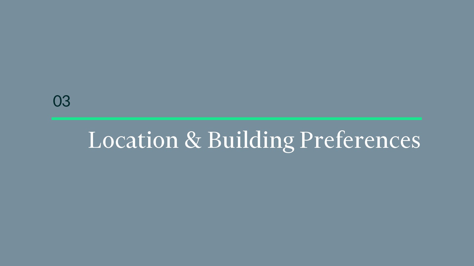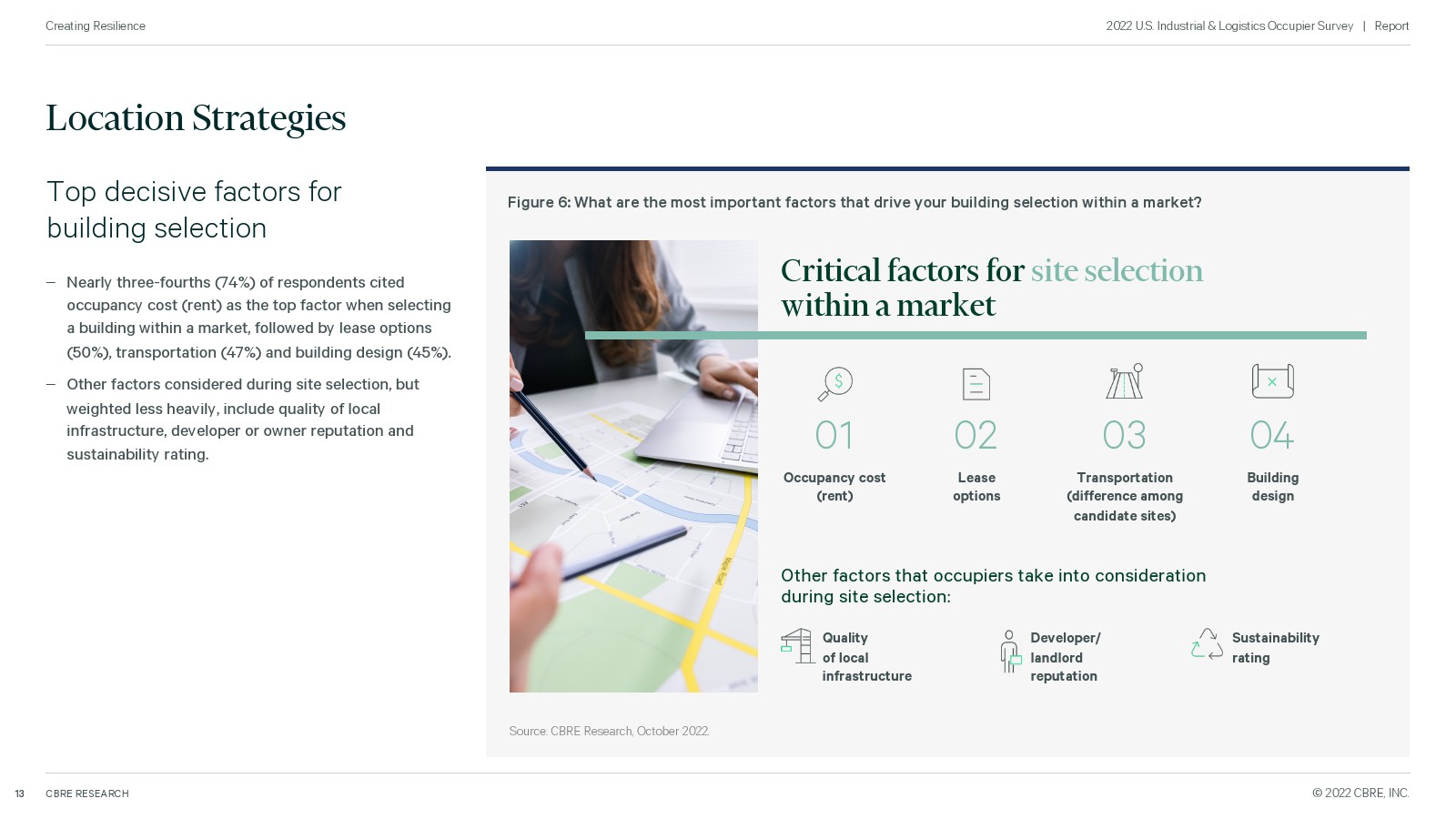 3、租用成本、租赁选择、交通、建筑设计和基础设施质量推动选址。