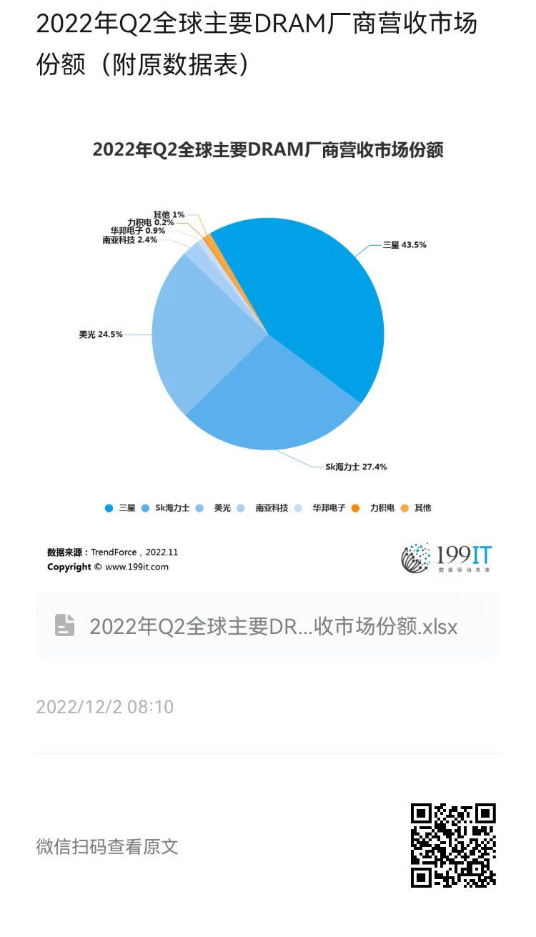 - 2022年Q3全球主要DRAM厂商营收市场份额(附原数据表)