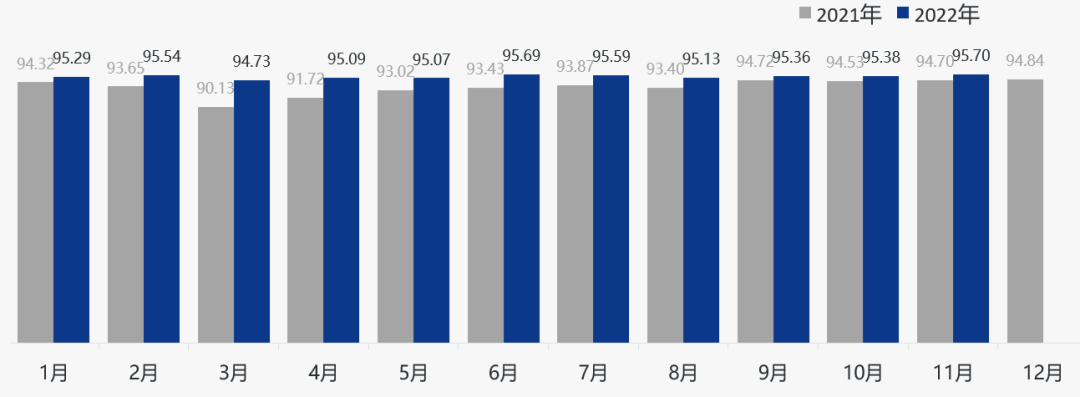 2022年11月,汽车售后服务口碑指数为95.70分,环比提升0.32分,同比提升1.00分。