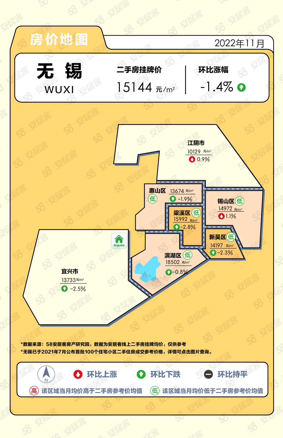无锡11月份二手房挂牌价格15144元/平方米,环比下跌1.4%,锡山、江阴地区二手房挂牌价格环比上涨。