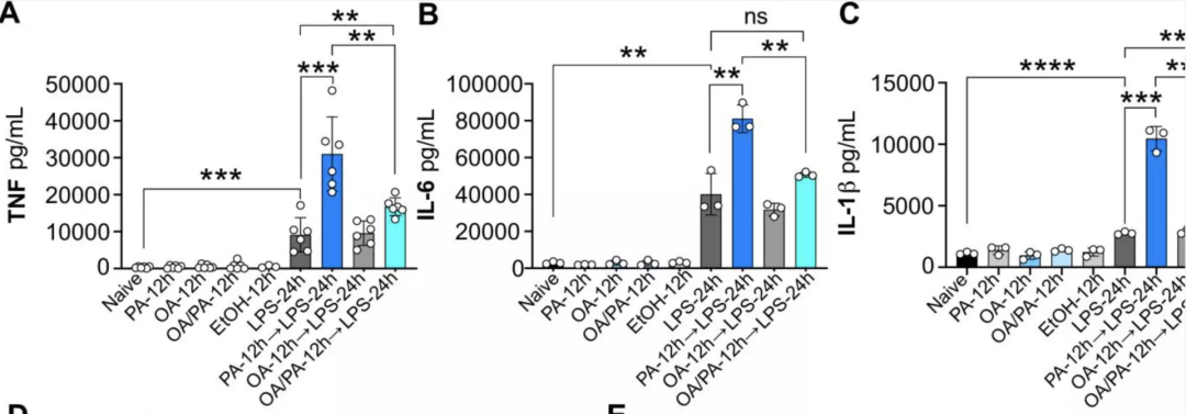 这些数据首次表明,像生酮饮食这样富含饱和脂肪酸的膳食模式,可以通过增强造血干细胞的扩增和分化,进而改变造血功能和训练免疫系统。在正常的情况下,这些细胞并不会“发炎”,但当受到LPS的攻击时,才诱发了促炎细胞因子的产生和增加。