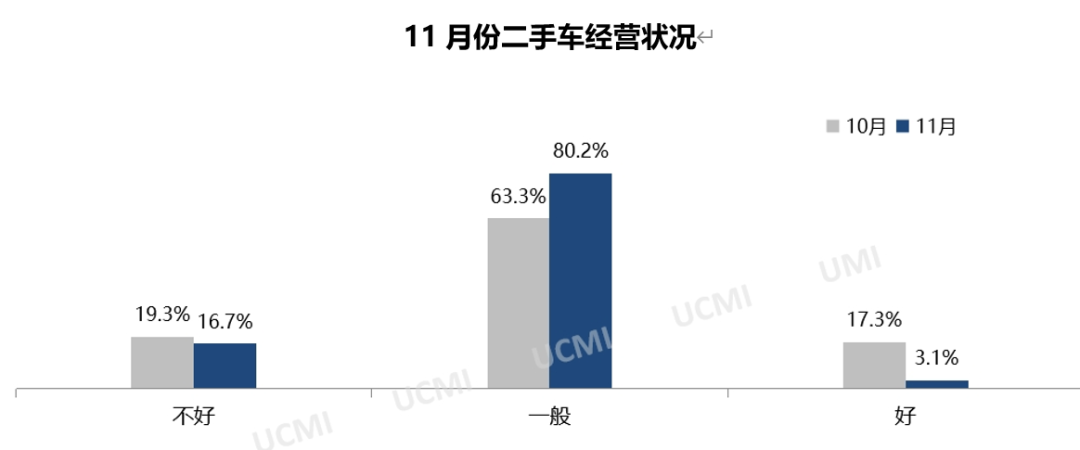 总体来看,11月份二手车市场主要受疫情防控的影响,全国多地二手车交易市场闭市、车商停业,市场需求与客流下降明显,11月份的整体经营情况表现不好。