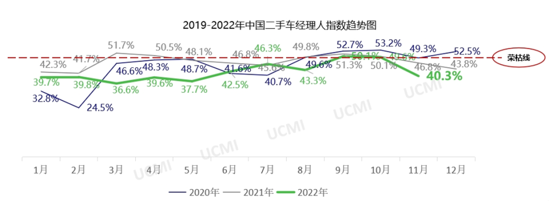 2022年12月1日,中国汽车流通协会发布最新一期“中国二手车经理人指数”(UCMI)。本期UCMI结果显示,11月份二手车经理人指数为40.3%,处于荣枯线以下,二手车市场景气度降低。