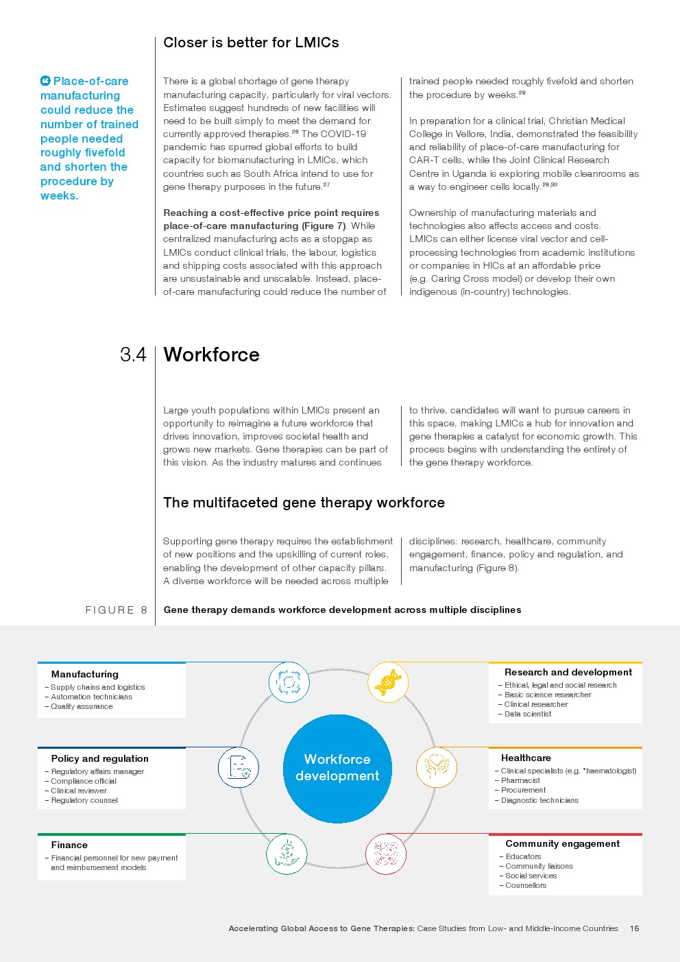 尽管这些疾病让LMIC不堪重负,但大多数基因治疗研究与开发(R&D) 和临床测试仍然仅限于高收入国家(HIC),主要是美国和欧盟。在LMIC,开发、测试和管理基因疗法所需的复杂设备、专家人员和成熟的监管环境在很大程度上不足或不存在。如果不能共同努力在资源匮乏的环境中建立基因治疗能力,全球健康差距可能会扩大。