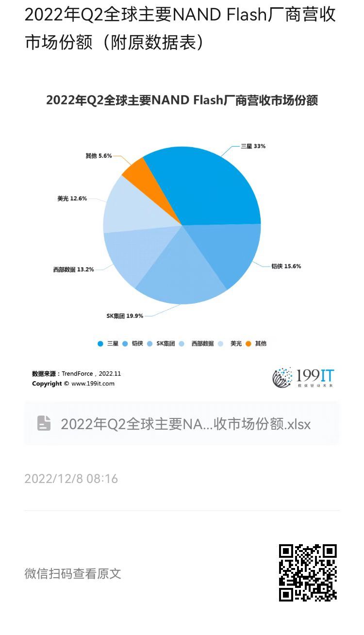 - 2022年Q3全球主要NAND Flash厂商营收市场份额(附原数据表)