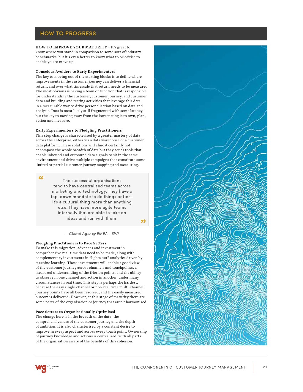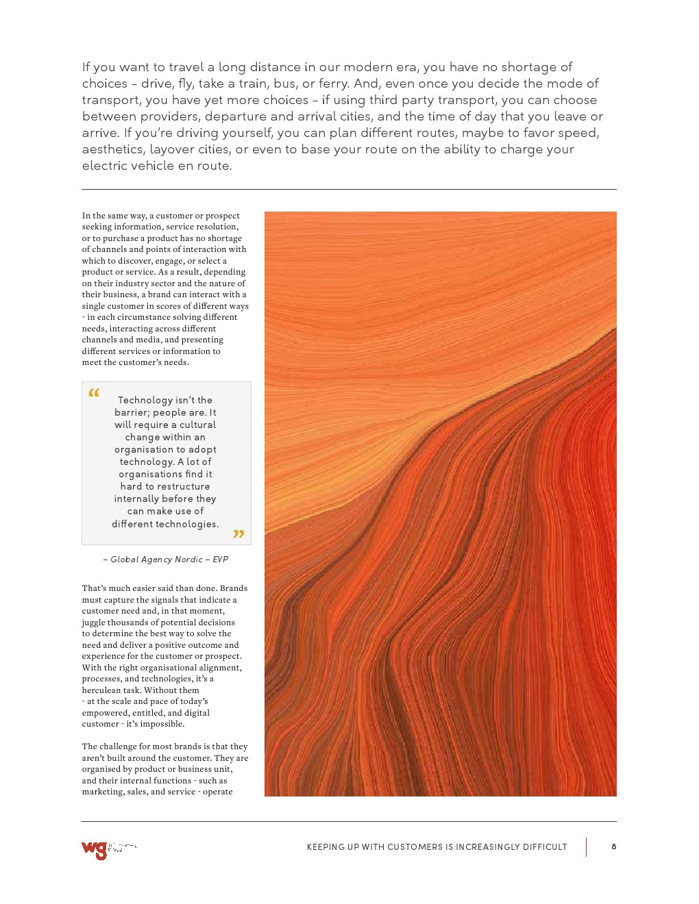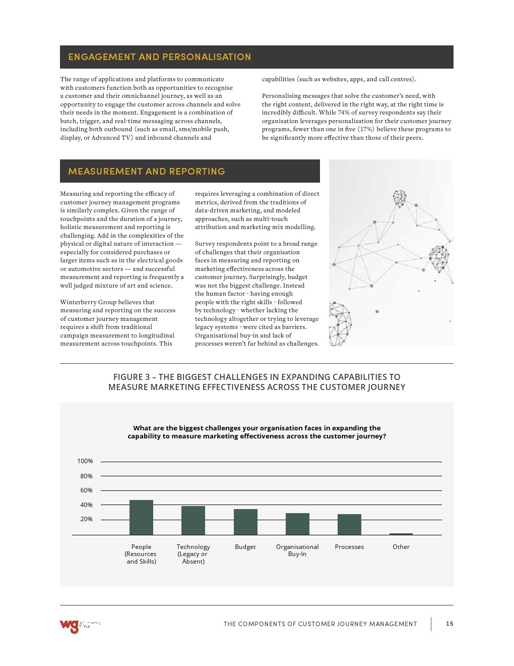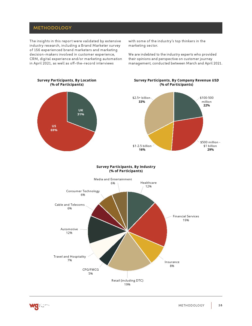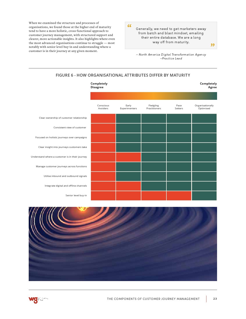 这项研究旨在了解美国和英国企业中客户旅程管理的普遍性和成熟度。 报告分析了公司在客户数据管理、旅程分析、决策和编排、参与和个性化以及测量方面所采用的方法。调查发现,由于缺乏高层支持、技能和资源、预算、技术,或依赖遗留技术等障碍,大多数公司都在努力取得挣扎。与此同时,大多数企业仍然采用营销活动而非以客户为导向的方法:58%的受访者表示他们的客户旅程管理方法侧重于营销活动层面;只有 17%的受访者表示他们专注于整体客户旅程。