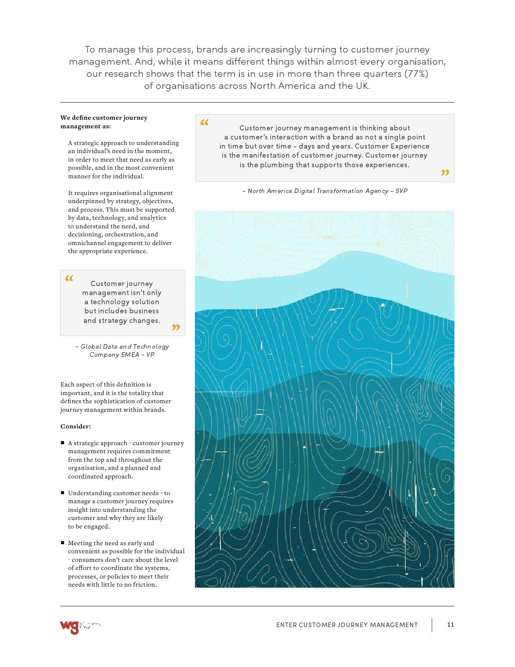 Winterberry Group 将客户旅程管理定义为“一种了解个人当前需求的战略方法,以便尽早满足该需求,并以最方便的方式满足个人需求。”这必须得到数据、技术和分析的支持,了解需求,以及决策、编排和全渠道参与,以提供适当的体验。