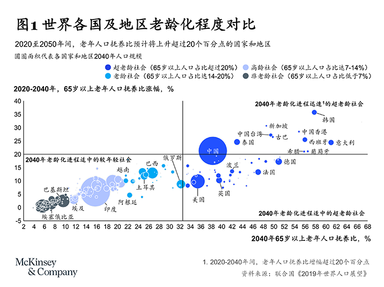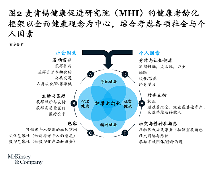 在本文中,麦肯锡健康促进研究院重点探究了老龄化对世界经济带来的影响,六类老龄健康关键需求,以及蕴含丰富机遇的四大转变举措。