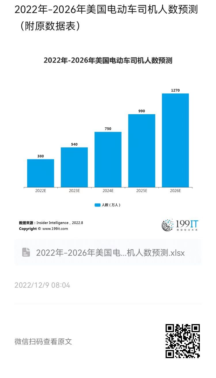 2022年-2026年美国电动车司机人数预测(附原数据表) ​​​​