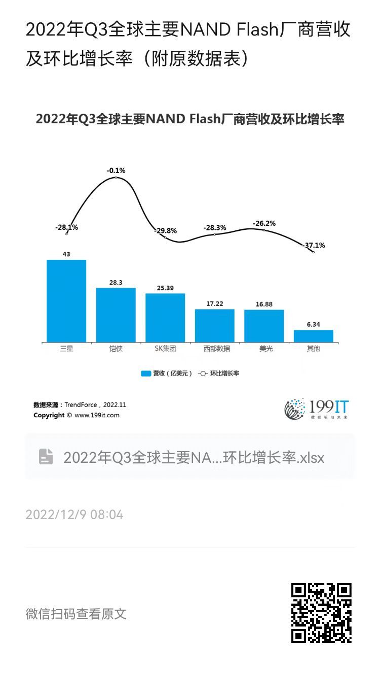 - 2023年Q3全球主要NAND Flash厂商营收及环比(附原数据表)
