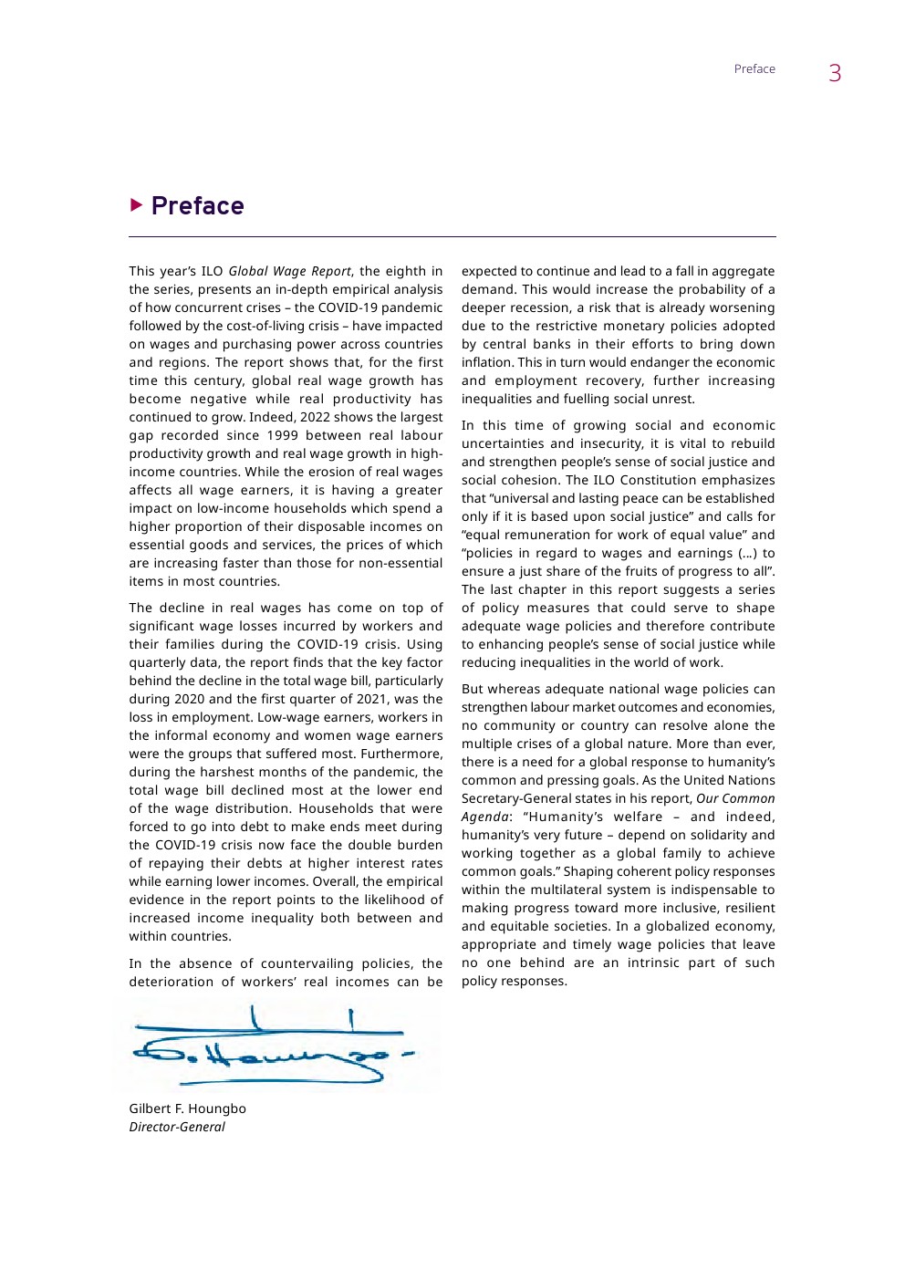 本期报告显示,在过去三年,家庭的工资和购买力大幅下降。首先是大流行,而且随着世界经济开始从危机中复苏全球通胀上升。2022 年的现有证据表明,通胀上升导致许多国家的实际工资增长跌至负数,降低了中产阶级的购买力,对低收入群体的打击尤其严重。