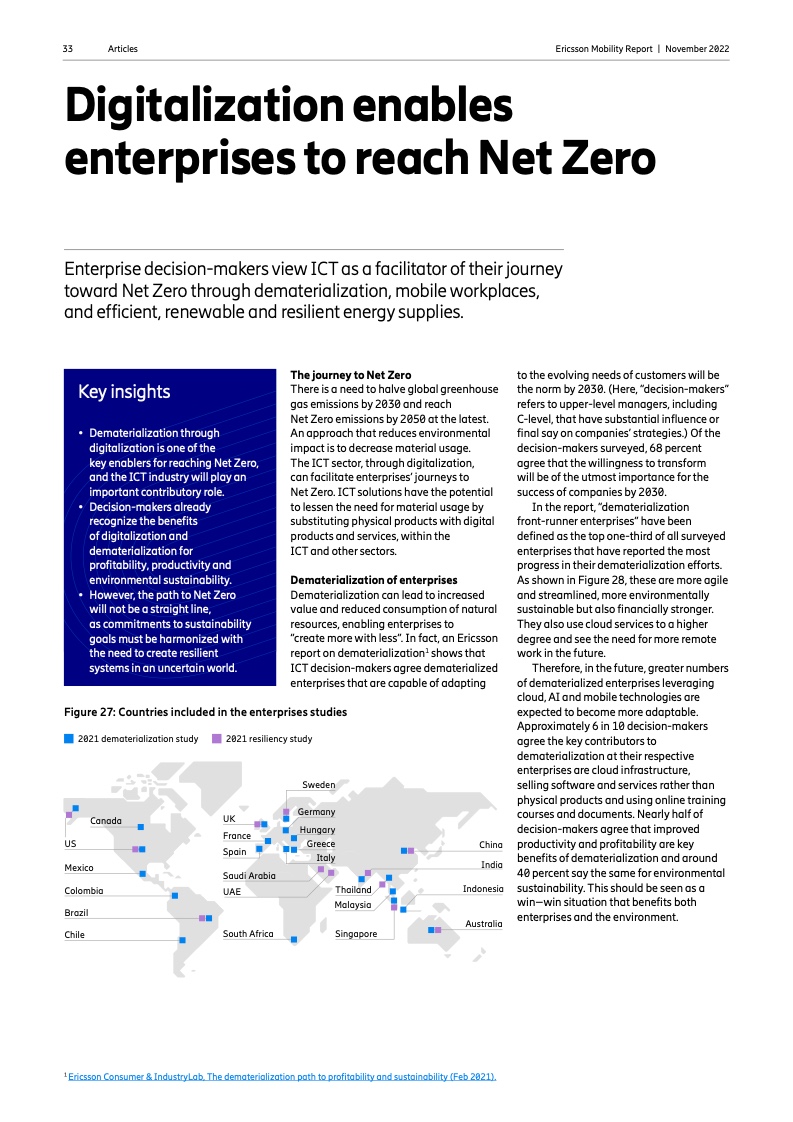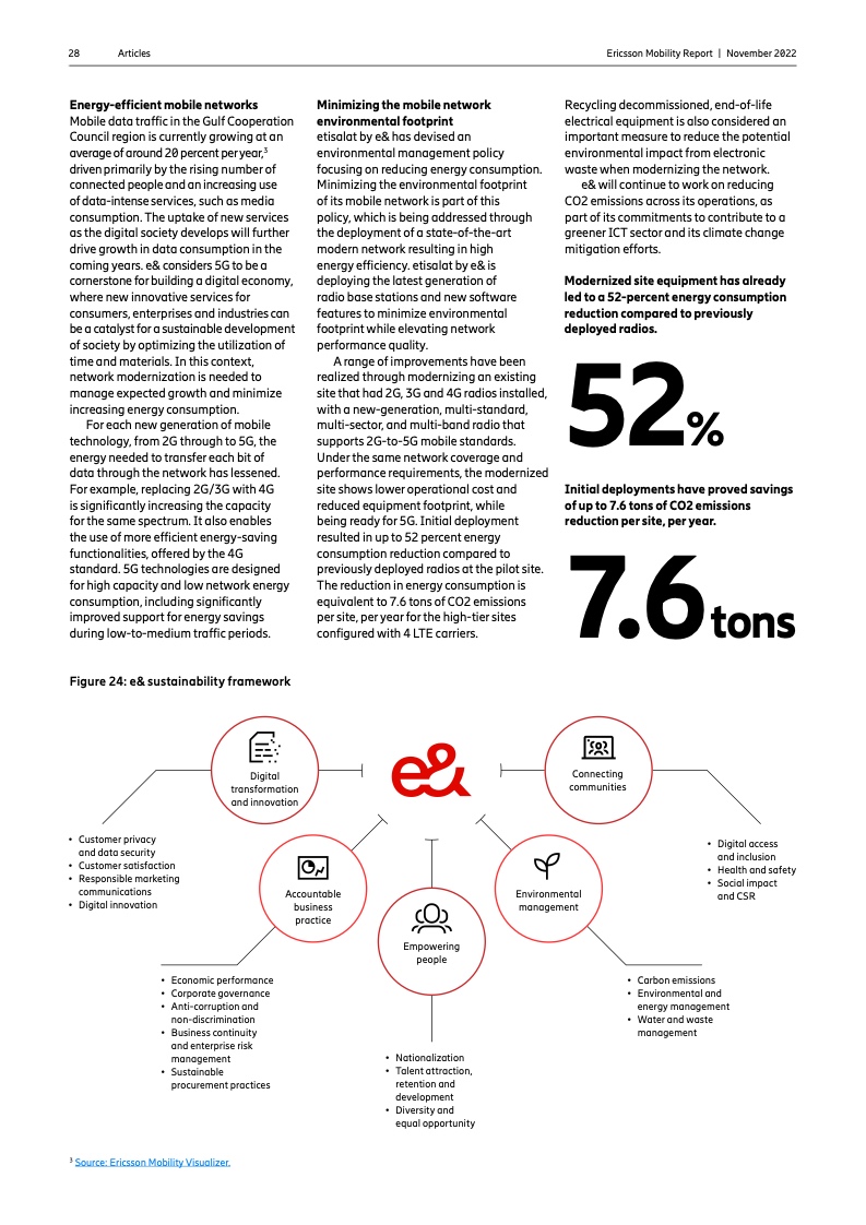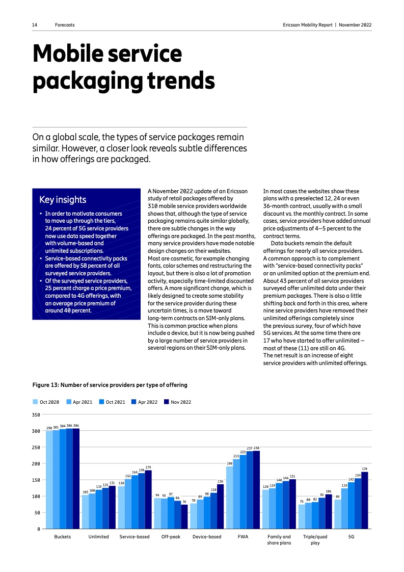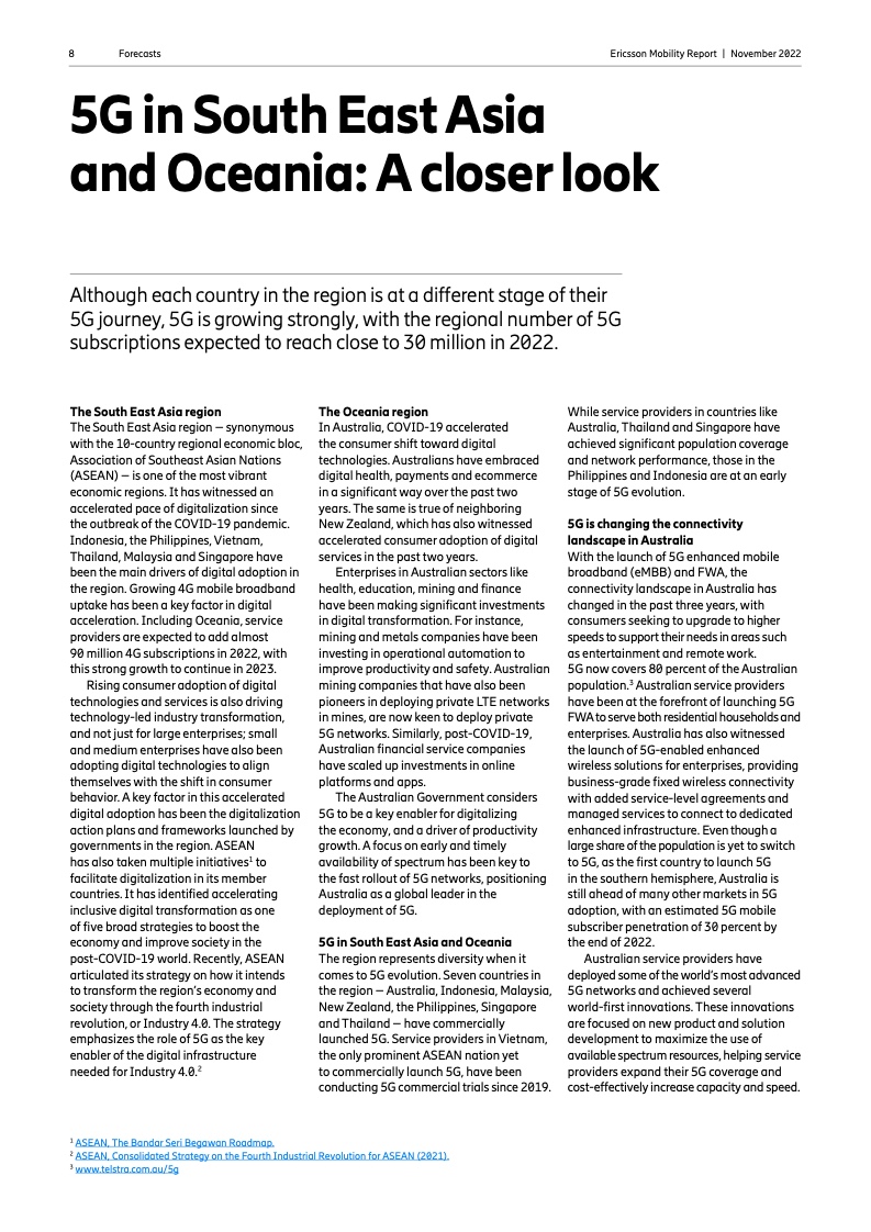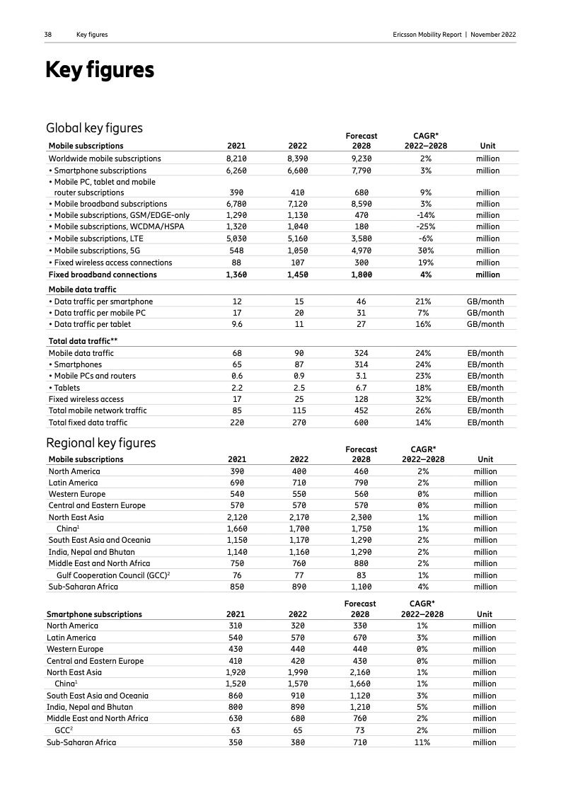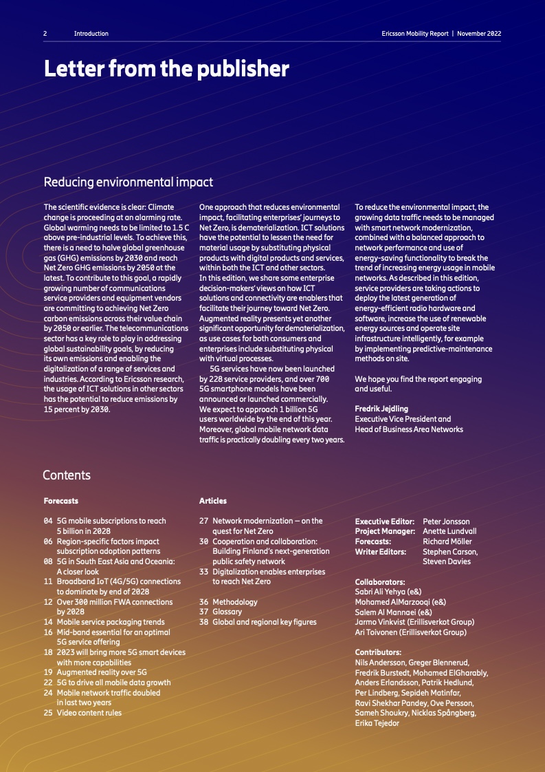 到 2022 年底,全球5G 用户预计将达到 10 亿人。2023 年市场将推出更多具有附加功能的智能 5G 设备。对 2028 年的展望是 5G 用户将超过 50 亿人,固定无线接入(FWA)连接数将达到 3 亿个,其中 5G 将占 FWA 连接的近 80%。