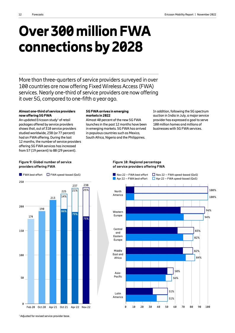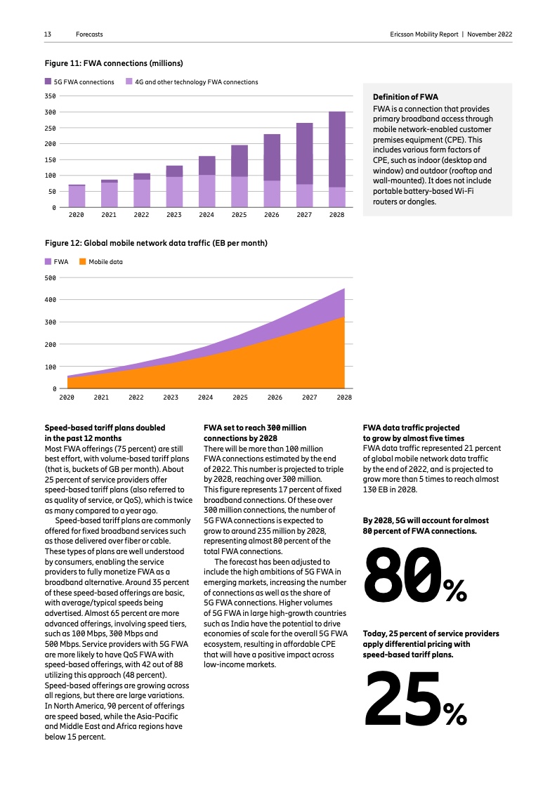 FWA 增长强劲,预计到 2028 年将有 3 亿个连接。