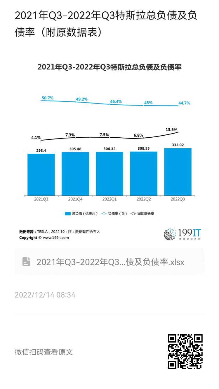 2021年Q3-2022年Q3特斯拉总负债及负债率(附原数据表) ​​​​