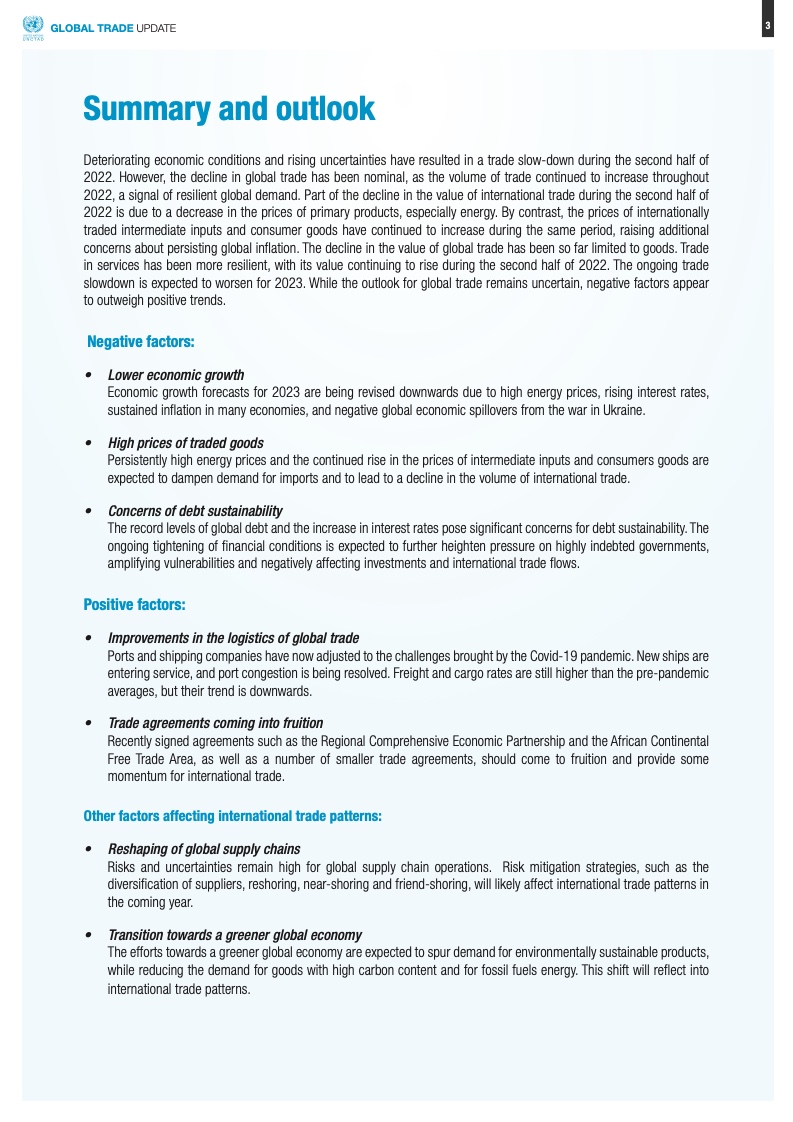 贸发会议提醒,全球贸易的前景存在不确定性,负面因素的影响似乎正在盖过积极的趋势。首先,由于高能源价格、利率上升、通胀持续以及俄乌冲突的影响,2023年的经济增长预期已经被调低。
