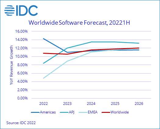 IDC的最新数据表明,尽管担心通货膨胀和持续的俄乌冲突,全球软件行业的收入表现强劲。当前的地缘政治和宏观经济动荡预计不会对软件增长产生决定性影响,因为企业推动更多的自动化和数字化以节省成本并改善全球供应链。