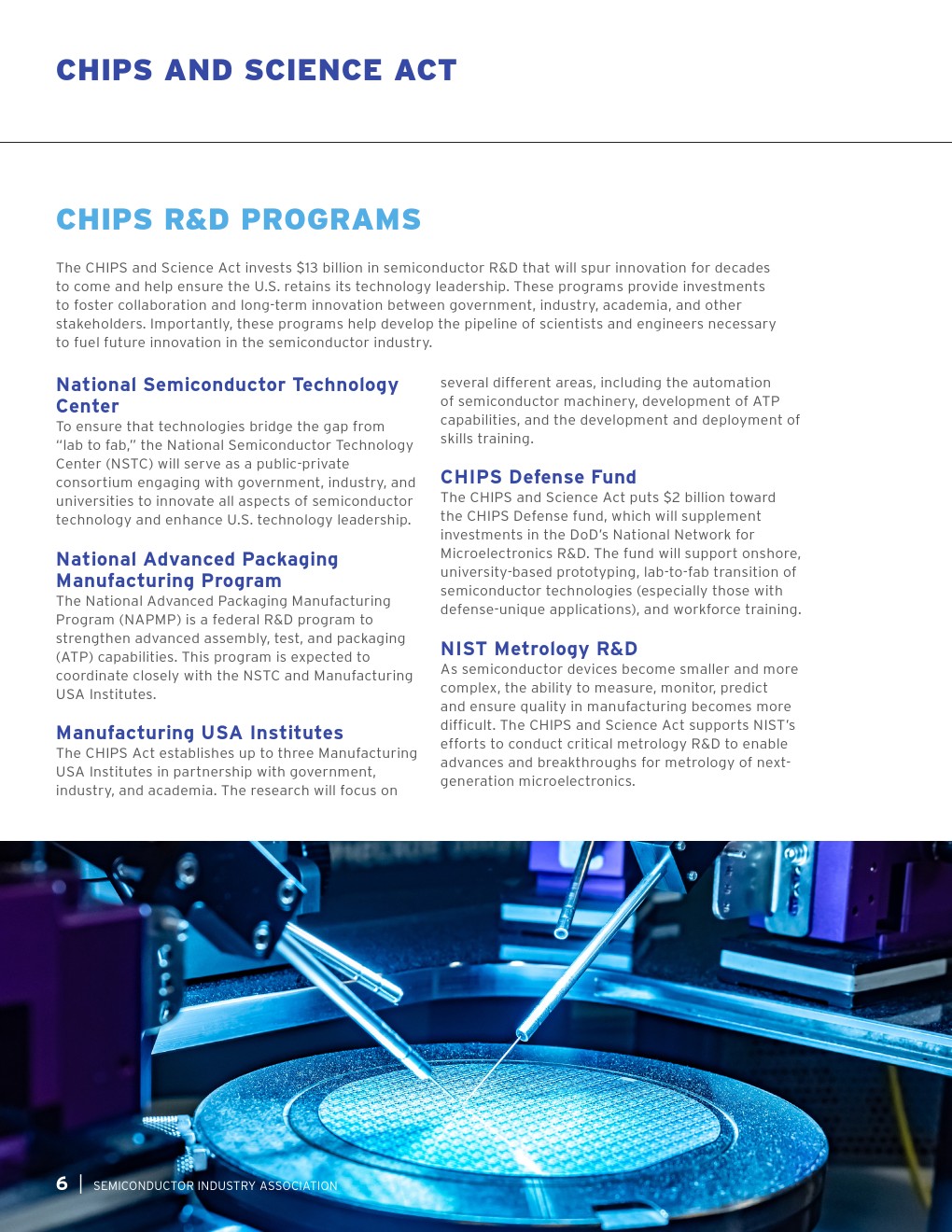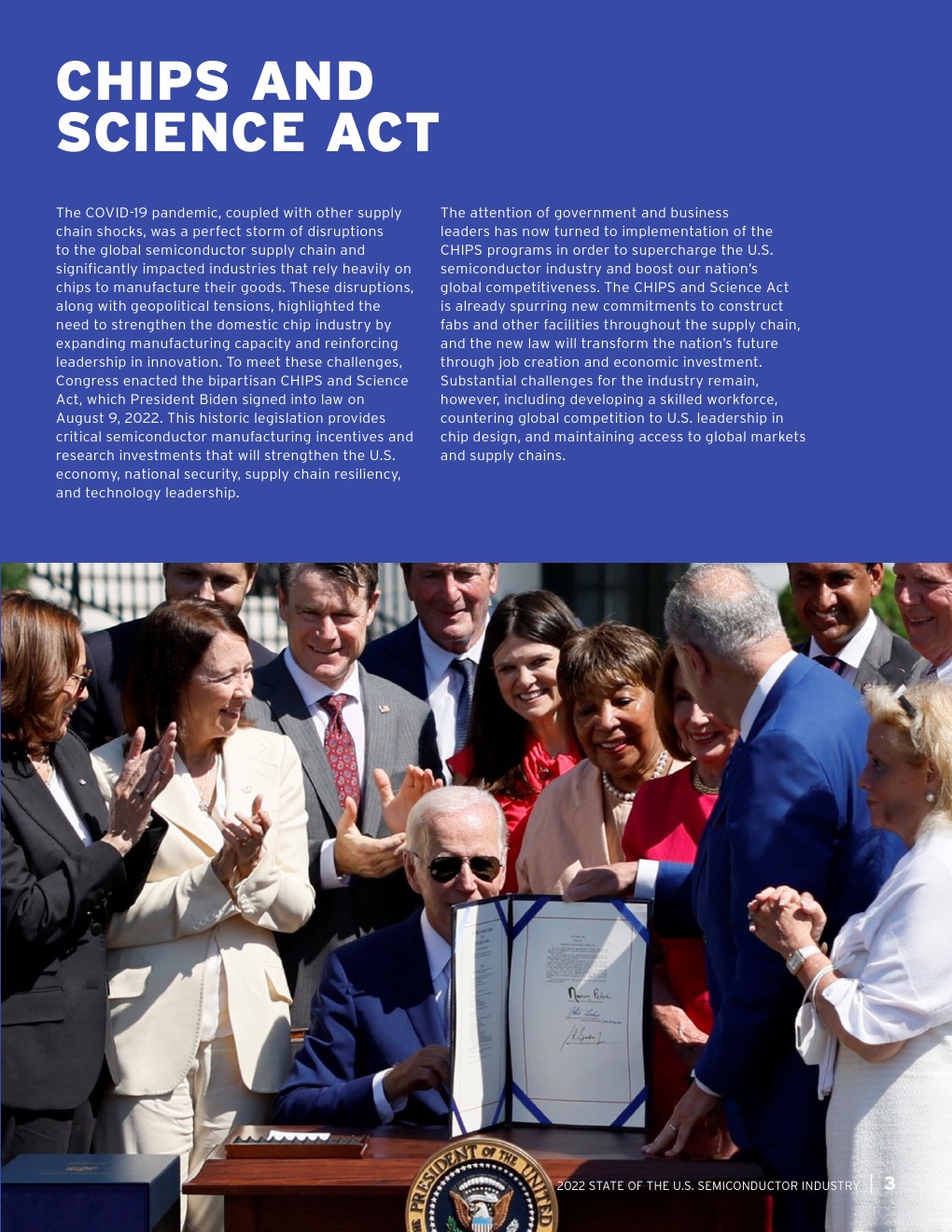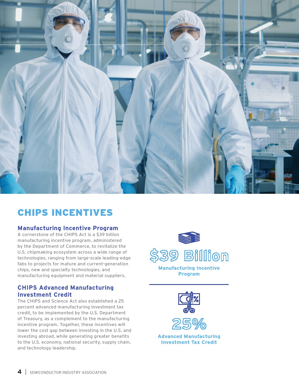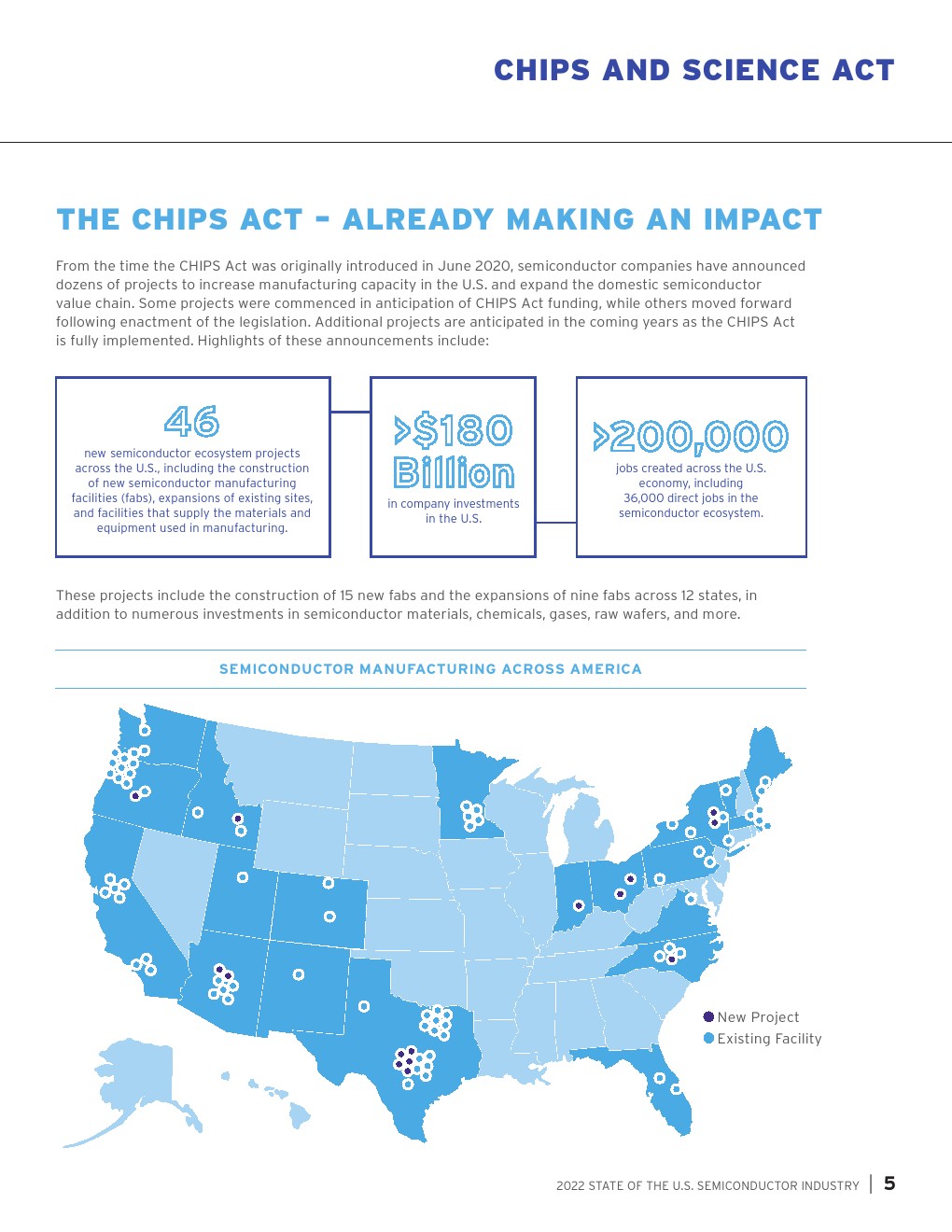 今年还颁布了具有里程碑意义的《美国2022年芯片和科学法案》,这将在未来几年大大加强美国国内半导体生产和创新。CHIPS 法案包括 520 亿美元的芯片制造激励和研究投资,以及半导体制造和半导体设备制造的投资税收抵免政策。