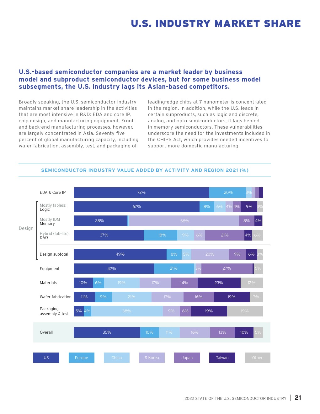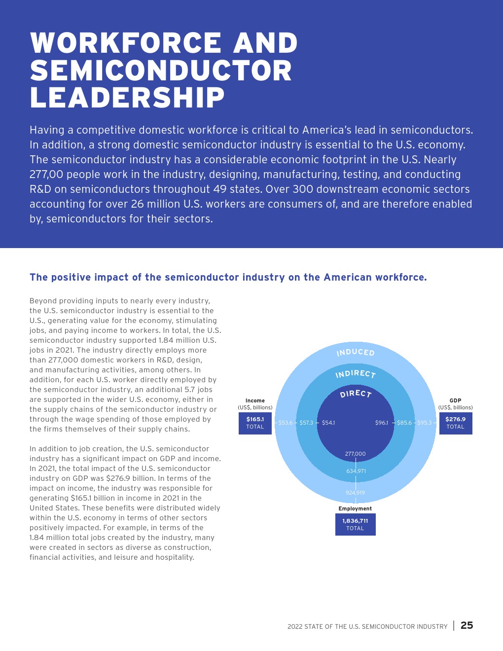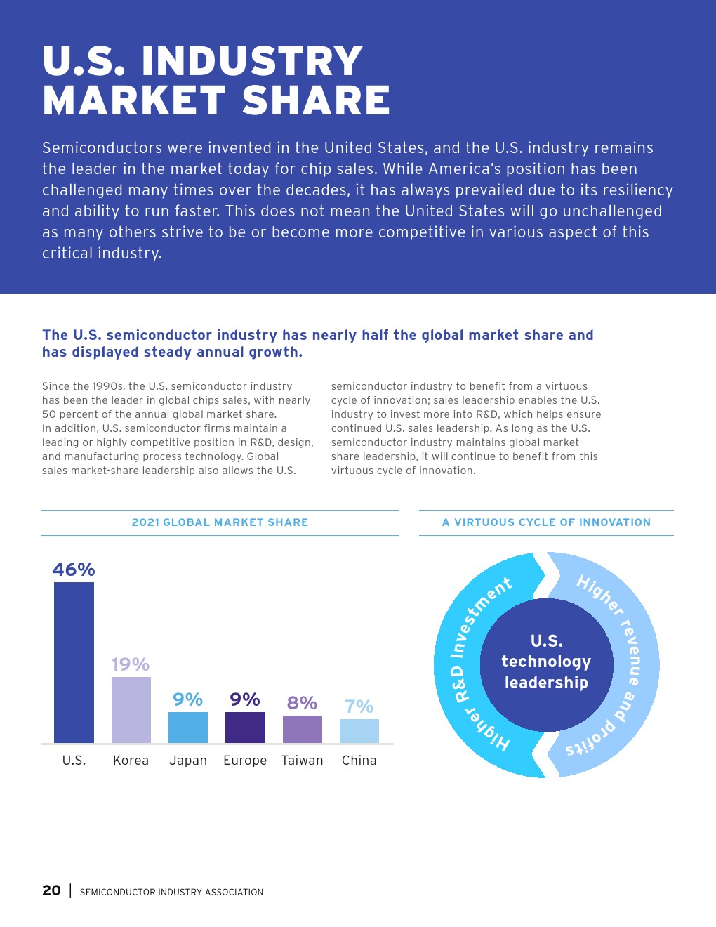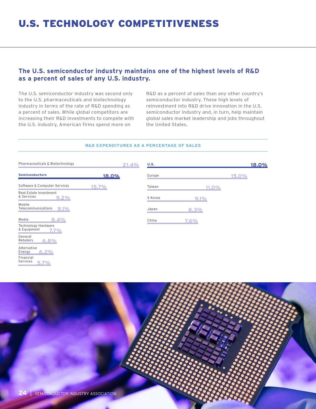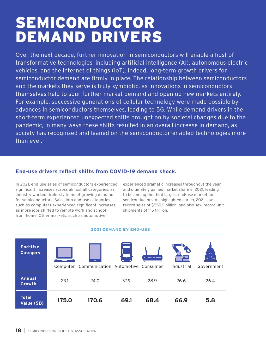 事实上,2022年全球各行业的半导体出货量比历史上任何一年都多,这一成就有助于缓解持续的全球芯片短缺。与此同时,美国半导体公司继续将年收入的大约1/5用于研发,2021 年达到创纪录的 502 亿美元。这推动了芯片的进步,以及其他行业的发展。